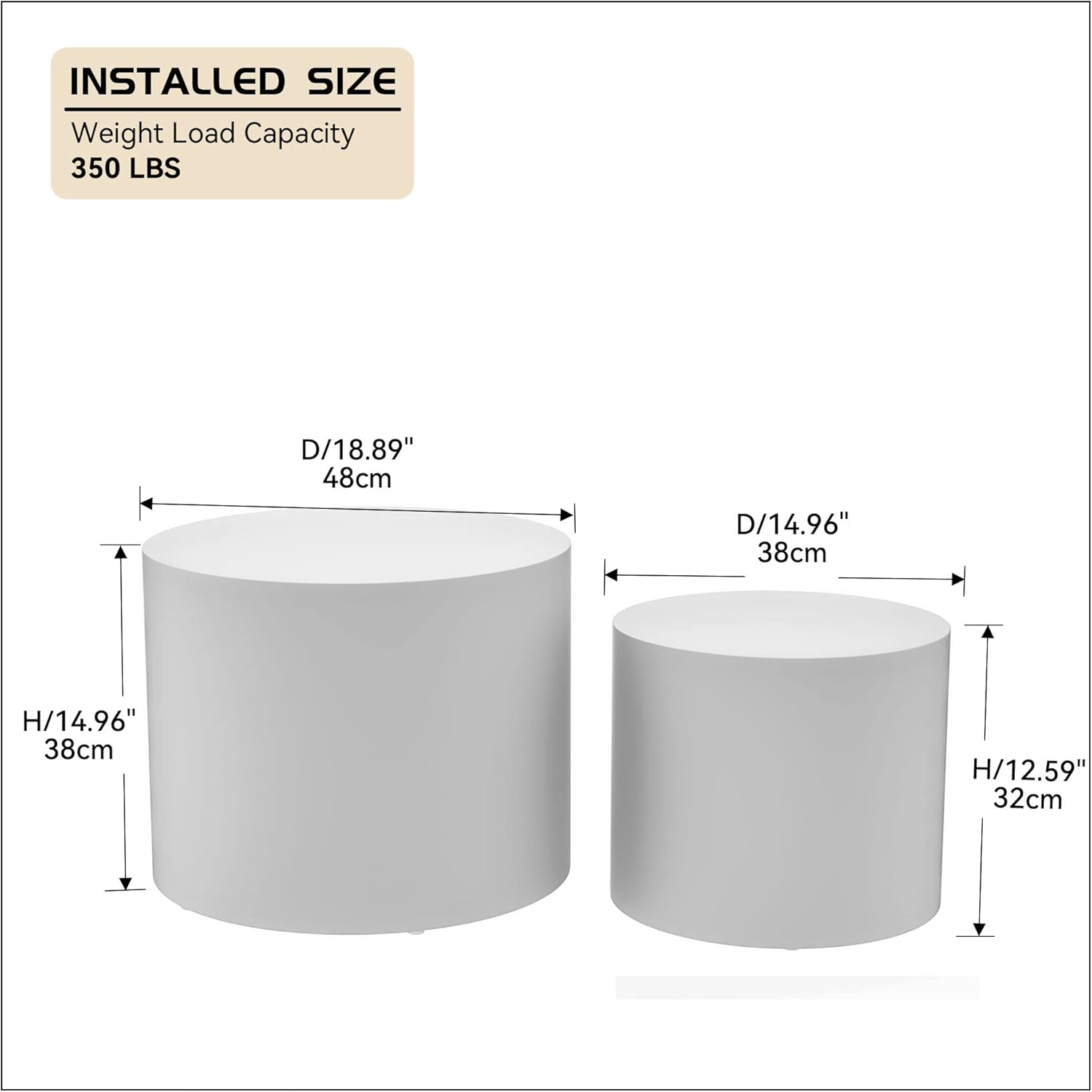- ā The nesting sets consists of one Coffee table (Φ 18.9 x H 14.9 inch) and one Side table (Ć 14.9 x H 12.5 inch) can be arranged in multiple ways.You could slide the small one under the big one when you wanted more space. You can combine them as you like, make your room tidy and neat.