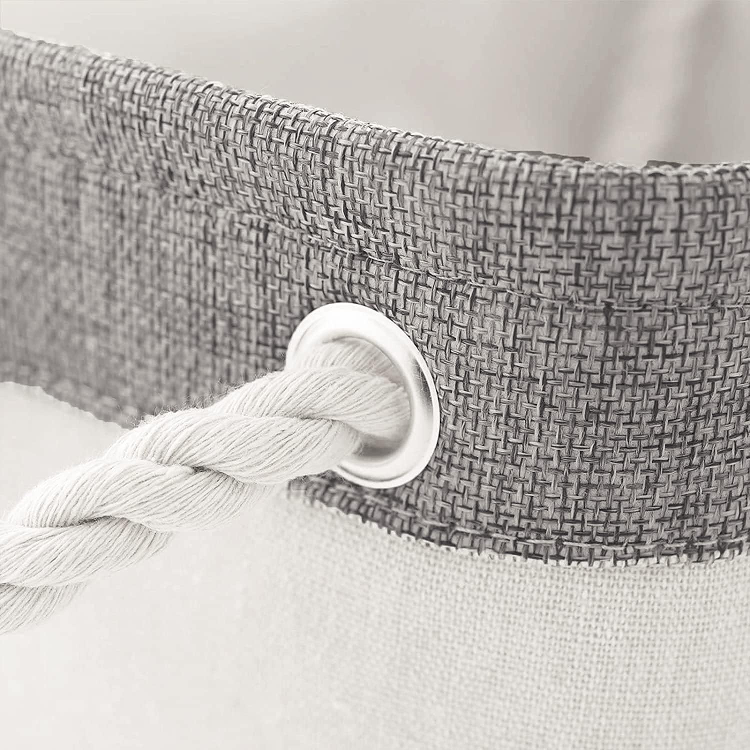 - Made of linen and thicken environmental EVA for reliable performance. Dimensions (each): 11.8 (L) x 7.9 (W) x 5.2 (H) inches.This collapsible basket set provides attractive, lightweight storage. Saves space when not in use and collapses flat for easy storage. It helps keep a room looking neat and tidy. The neutral color combination fits most dĂŠcor while the two side carry handles make it easy to carry