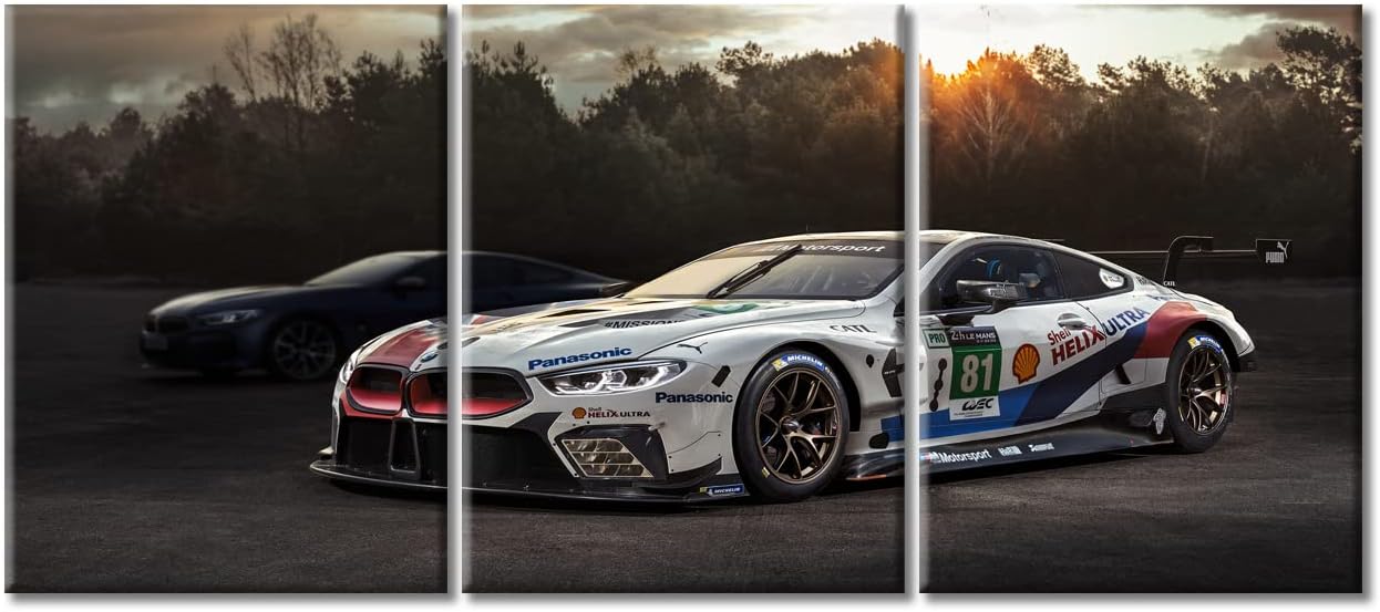 Black and White Pictures for Living Room White Racing Cars Wall Art Prints on Canvas Speed Sports Car Painting Modern Artwork Wall Decor for Mens Bedroom Office Bathroom Decor Ready to Hang 36"Wx16"H
