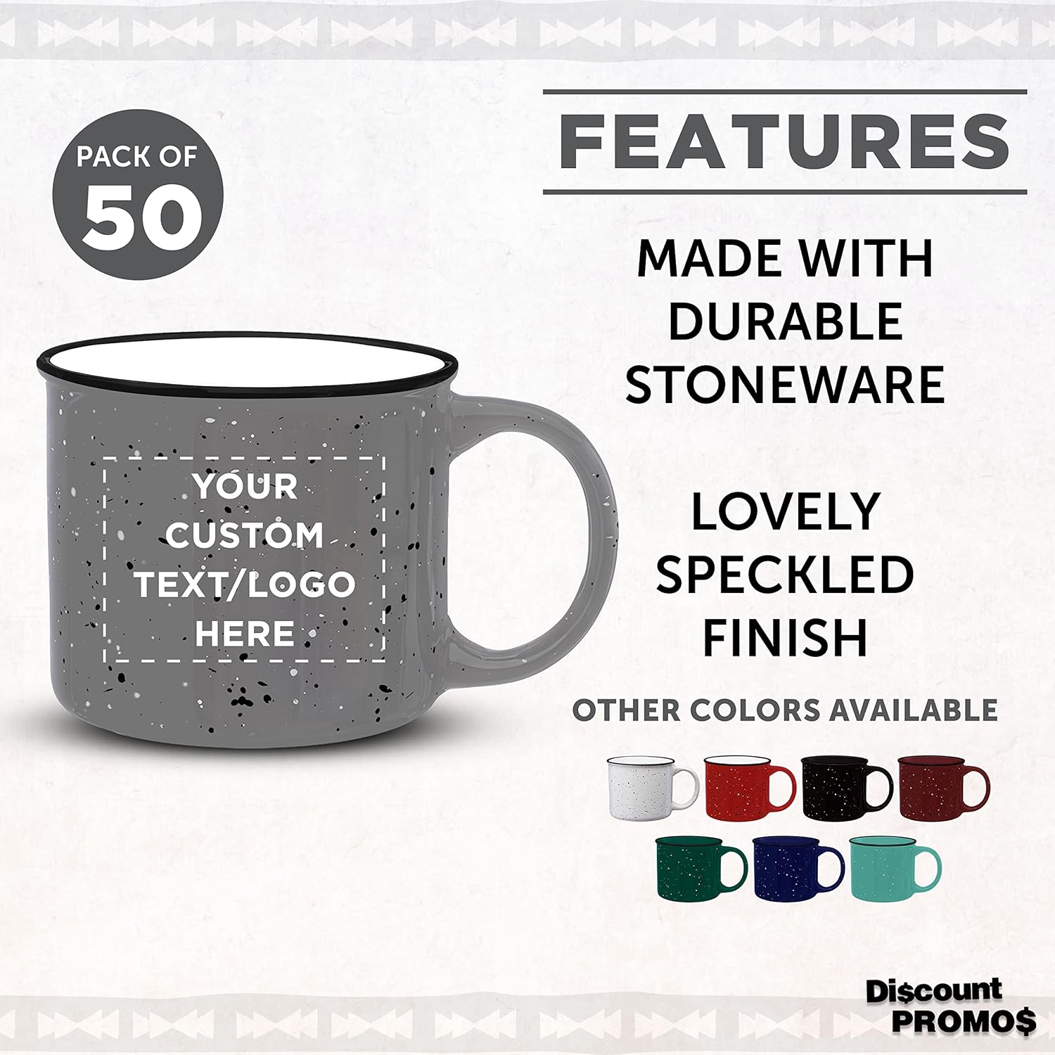 DISCOUNT PROMOS Custom Ceramic Campfire Coffee Mugs 13 oz. Set of 50, Personalized Bulk Pack - Perfect for Tea, Espresso, Cappuccino, Hot Cocoa - Grey