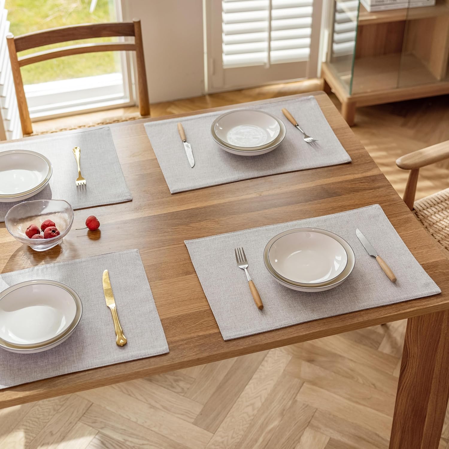 Demetex Placemats Set of 4 Grey Heat Resistant Linen Place Mats for Kitchen Washable Farmhouse Table Plate Mats for Dining Parties Buffet Dinner, Light Grey