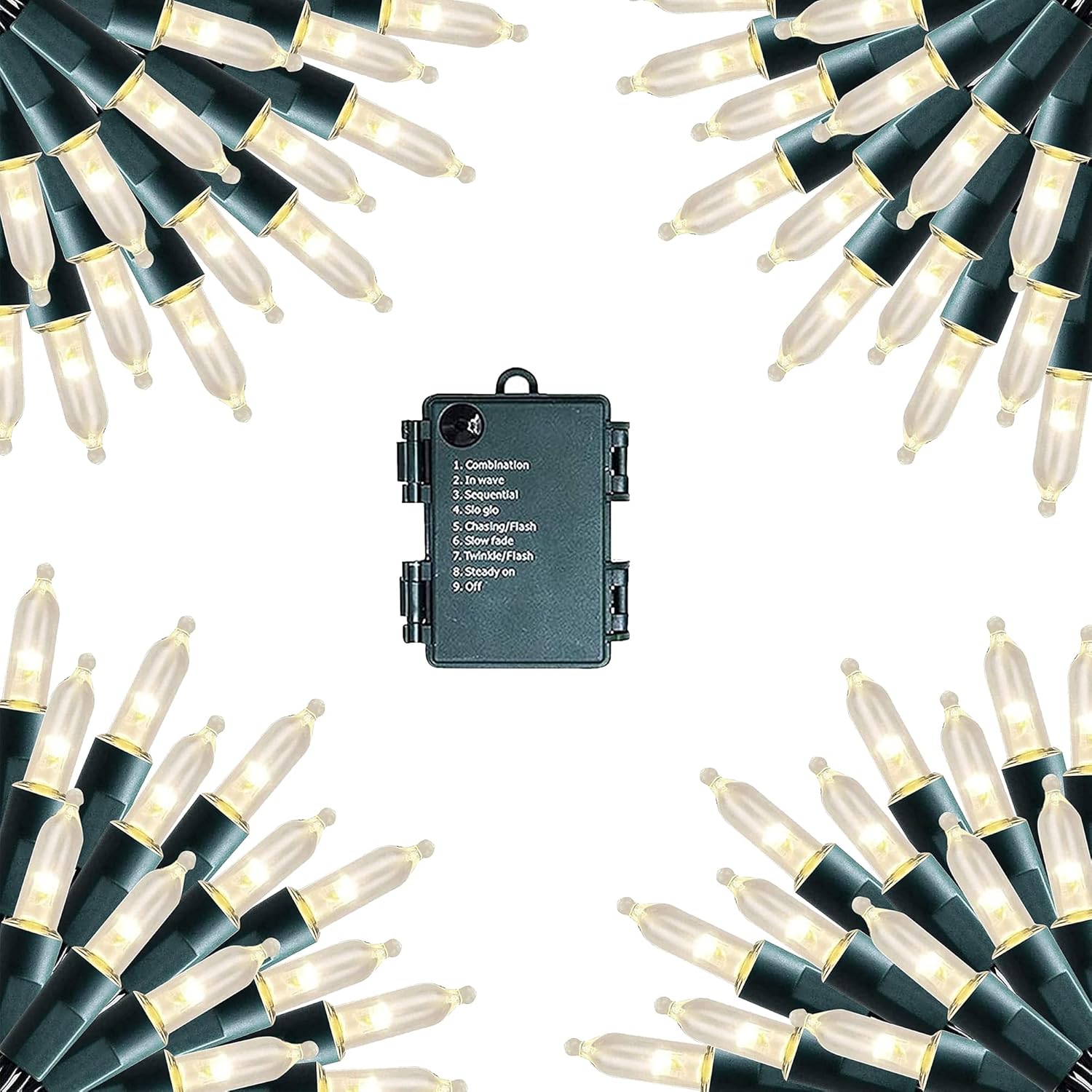 - 8 Lighting Modes: Dazzle Bright mini string lights has 8 different lighting methods, including combination, in wave, sequential, slo glo, chasing/flash, slow fade, twinkle/flash, steady on. Press the button on the battery box to select the lighting mode you like.