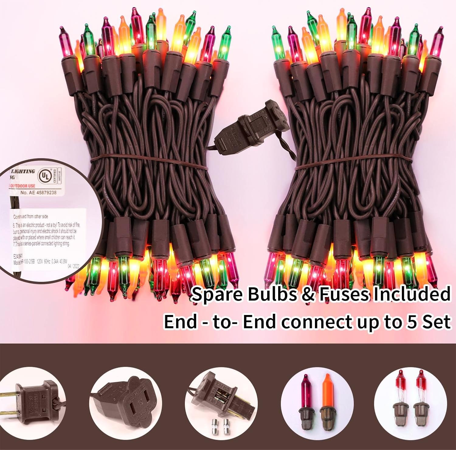 Brown Wire,Multicolor,Incandescent Bulb 100 Mini String Lights for Indoor Halloween Tree Home Garland Birthday Wedding Party Festival Decoration