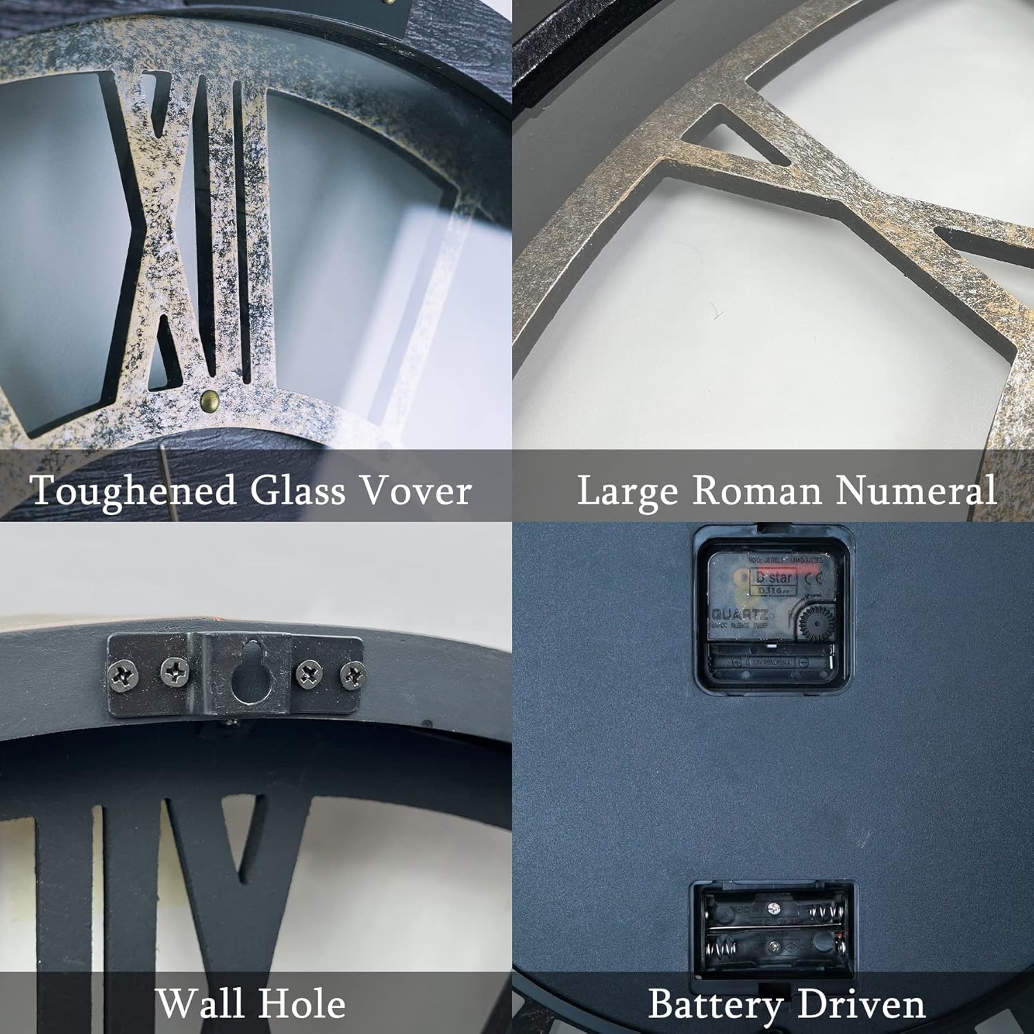 - 🕞Real Rotating Gears: The exposed gears on this large wall clock are real and rotate independently of the pointers. With a dust proof glass cover and battery powered operation, the gears rotate almost silently, providing a unique and dynamic way to experience time.