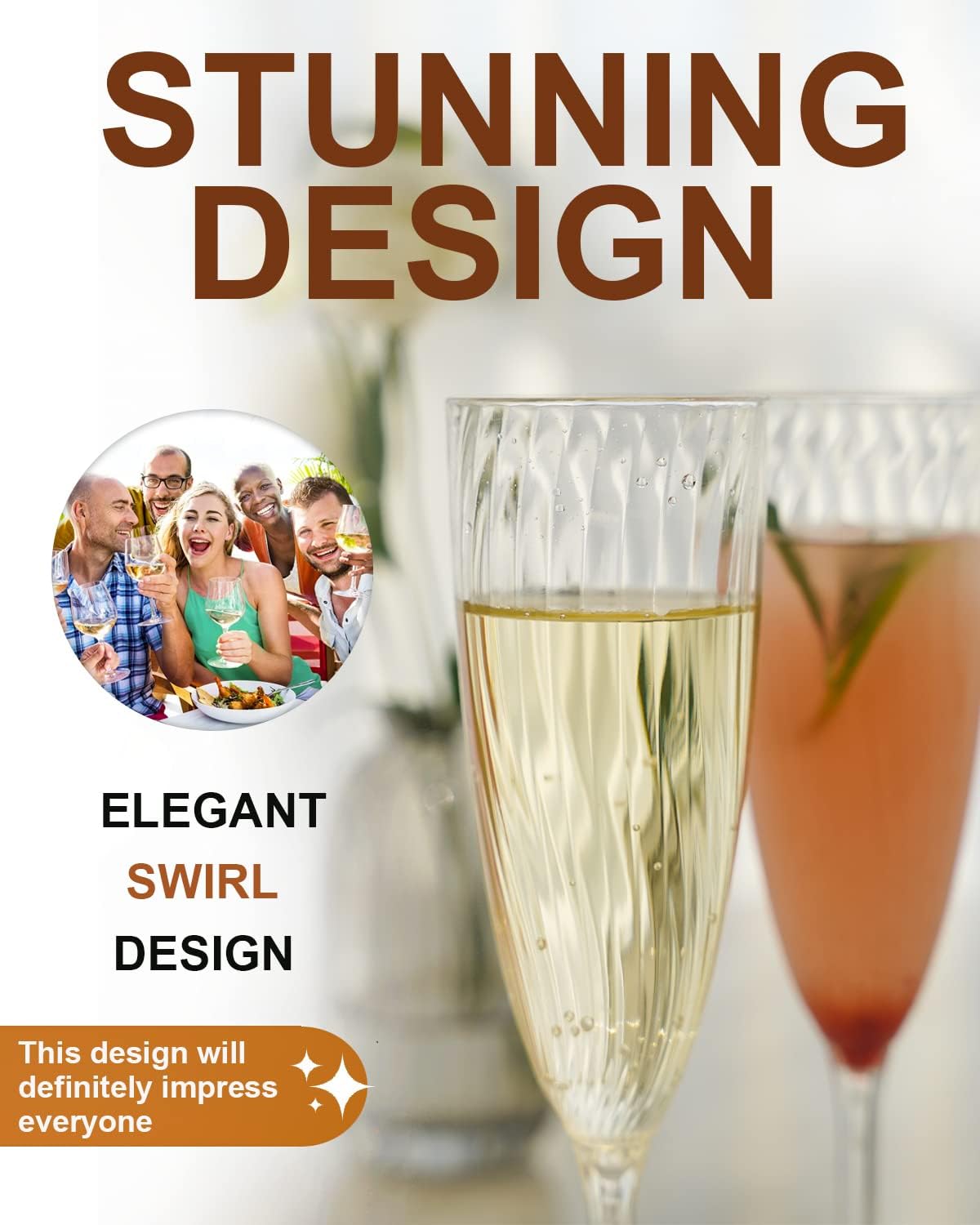 - š„Elegant designš„ Each package contains 36 pcs plastic champagne glasses. This plastic champagne flute is different from other assembled glasses. Our champagne flute has an integrated and elegant appearance design, which adds luster to any of your activities. Your friends will like this wine glass and enjoy it uniquely.