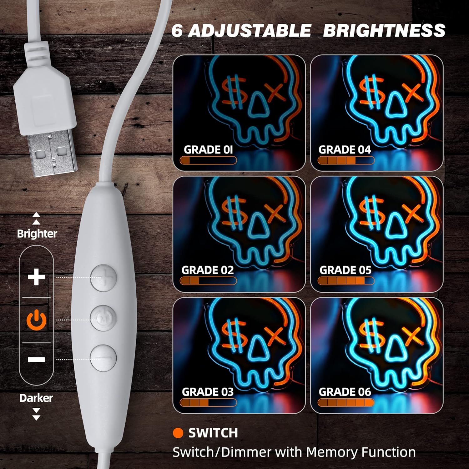 - đ 6 Dimmable Switch: Our skeleton neon sign has 6 adjustable light modes, making it a great wall decoration that can replace boring desk lamps and add some color to a boy's playroom. It's perfect as a birthday or Christmas gift for your family, significant other, boyfriend, kids, and more.
