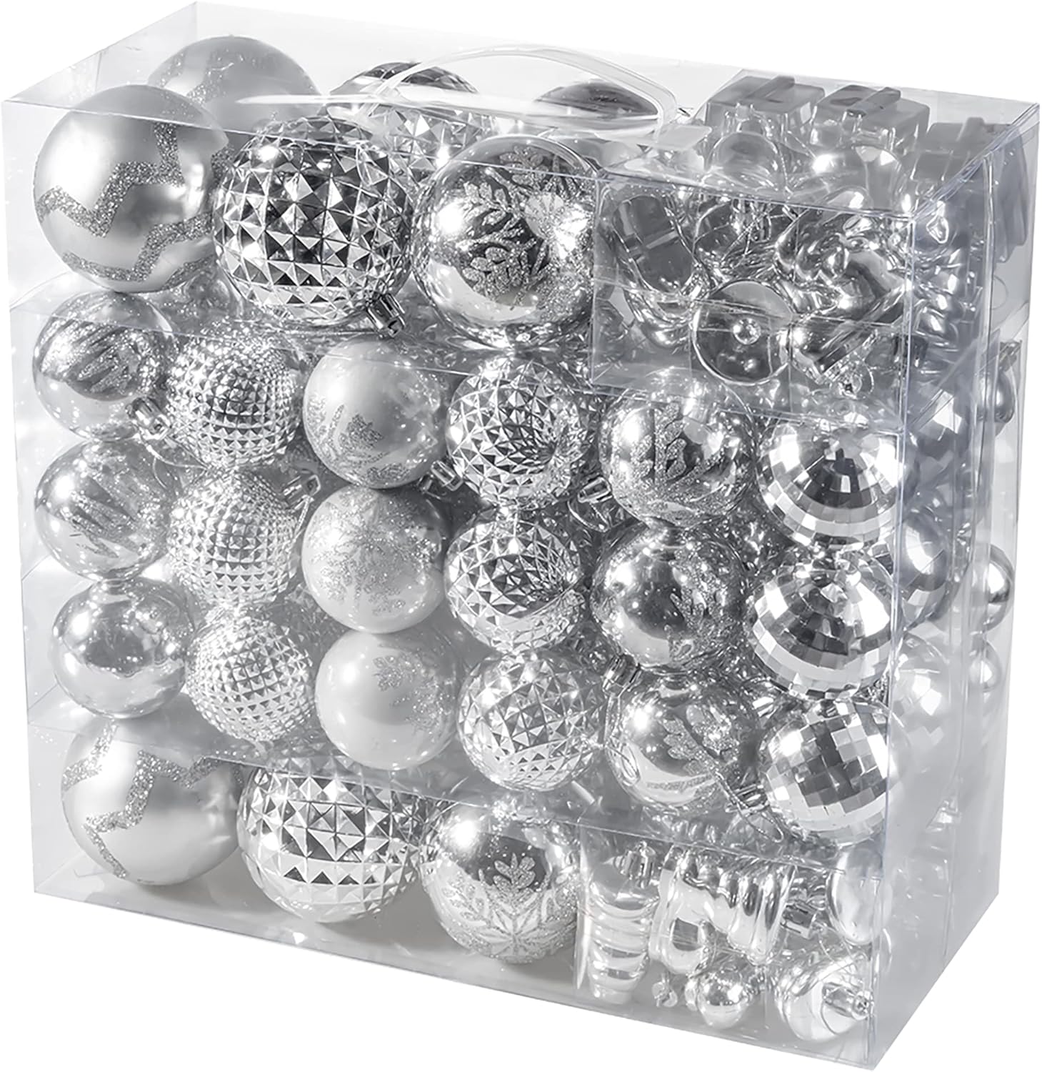 116Pcs Silver Christmas Ball Ornaments Set, Shatterproof Christmas Hanging Decoration Set with Gift Box, Assorted Decorative Baubles Set for Xmas Tree/Home/Wedding/Party/Holiday (Silver)