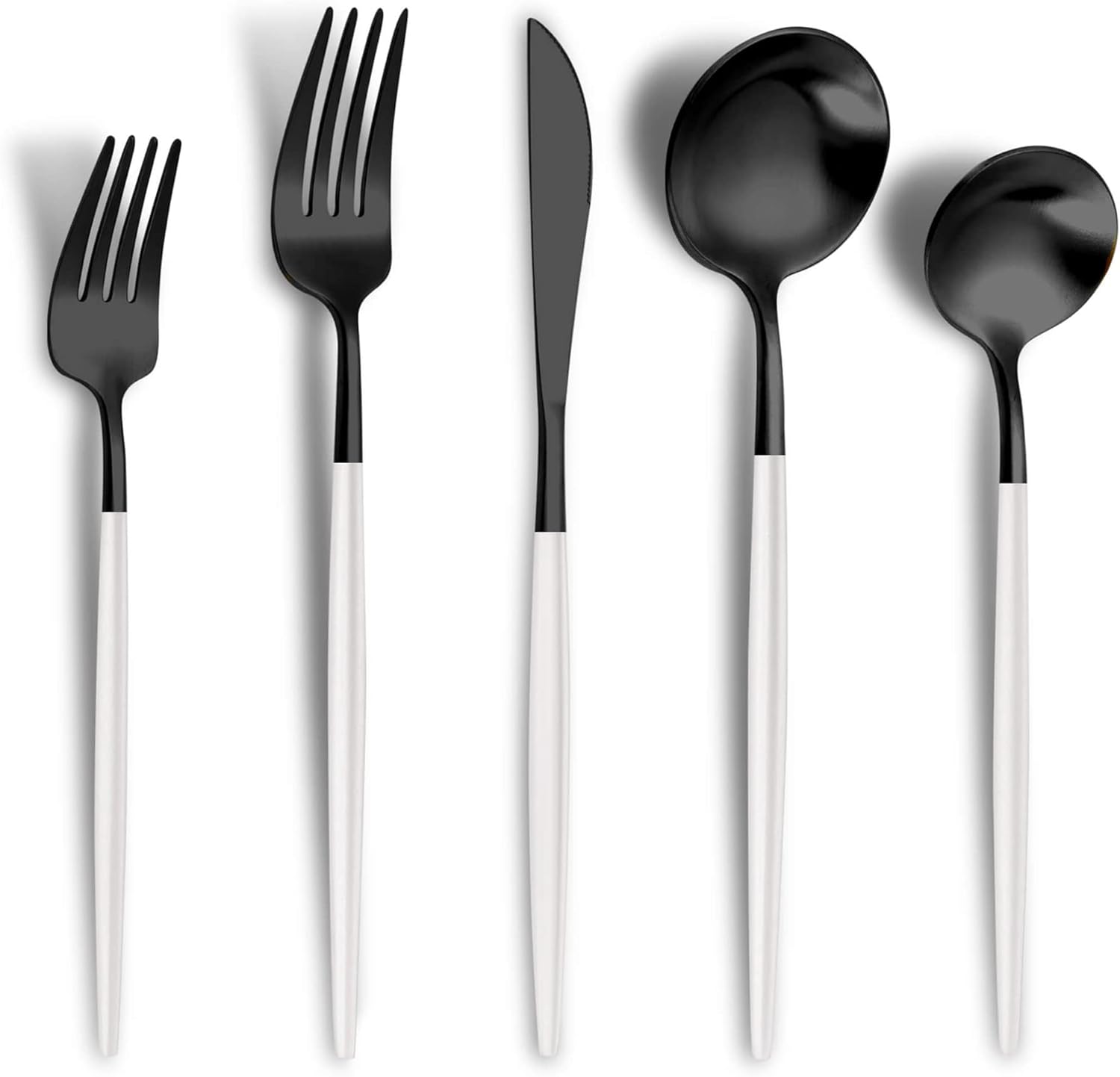 Matte Black White Silverware Set for 6,Modern Stainless Steel Brushed Cutlery Set,30-Pieces Heavy Duty Flatware Set,Knives Spoons and Forks Set Utensils Set, Satin Finish, Dishwasher Safe