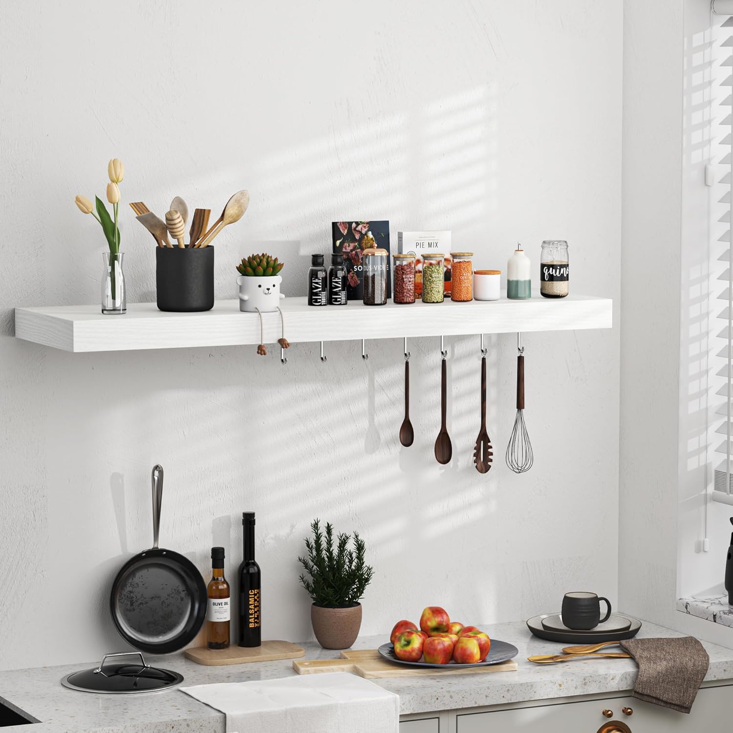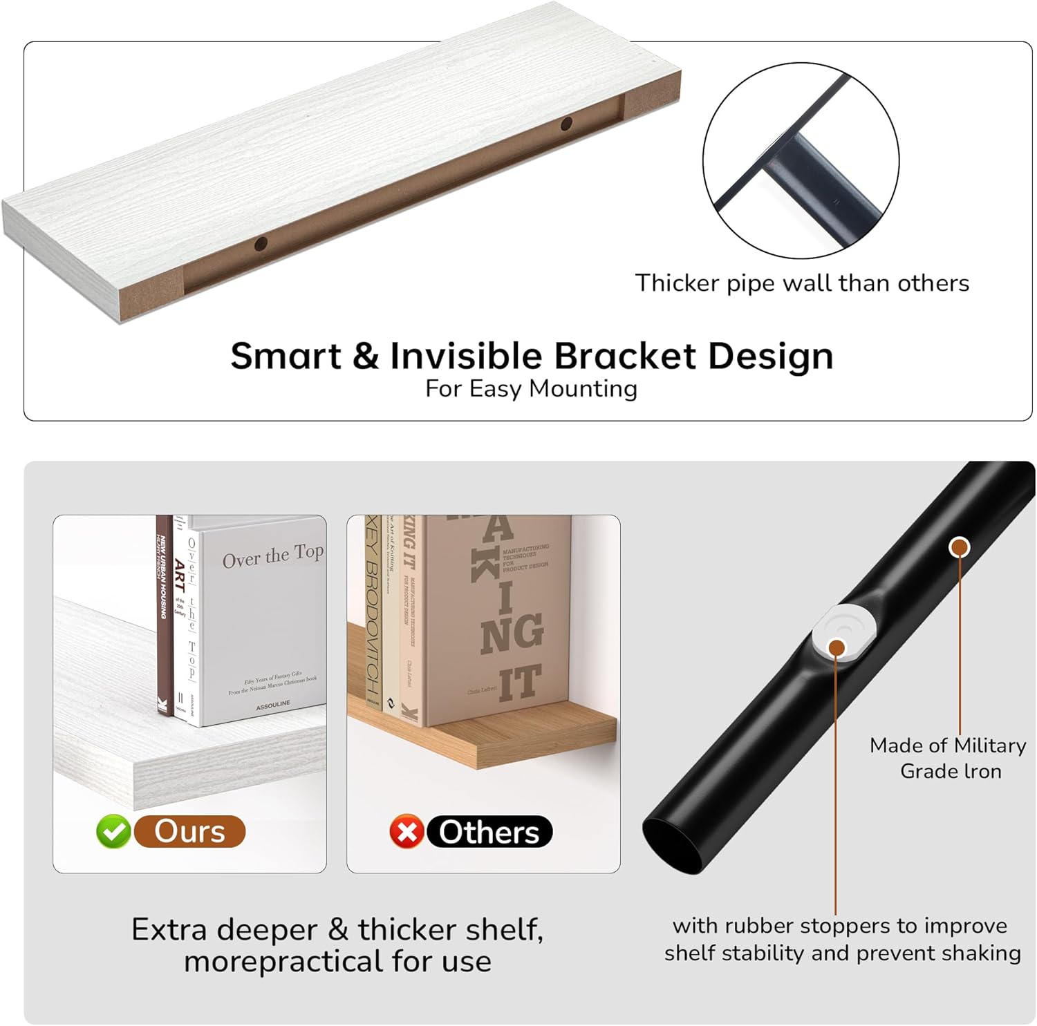 - Extra Deeper & Thicker - This wall shelf measures 36"W x 10.23"D x 1.8"H. Extra deeper and thicker design in order to bring maximizes storage space and weight capacity, even hold up to 70 lb. This floating shelf taking up zero square feet, reduces clutter and highlights dƩcor in compact spaces.