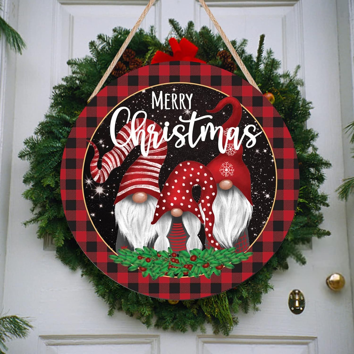 Christmas Gnome Wooden Hanging Sign Door Decoration,Merry Christmas Welcome Sign Front Door with Three Dwarfs for Christmas Home Window Wall Farmhouse Indoor Outdoor