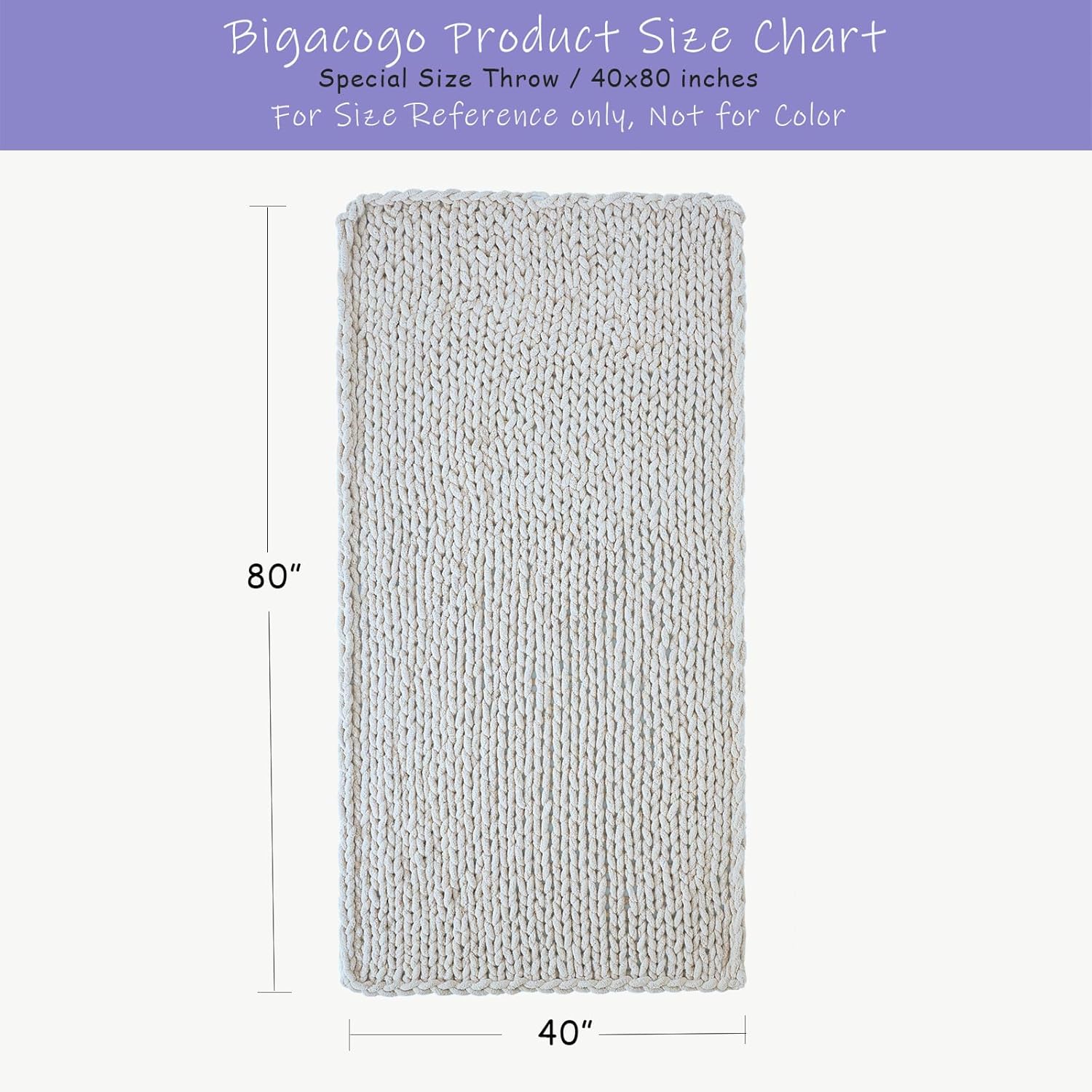 Bigacogo Chunky Knit Throw Blanket for Couch, 40x80 inches, 100% Hand Knitted with Thick Jumbo Chenille Yarn, Cozy Soft Large Rope Knot Cable Crochet Blankets for Sofa Bed Living Room, Bright Blue