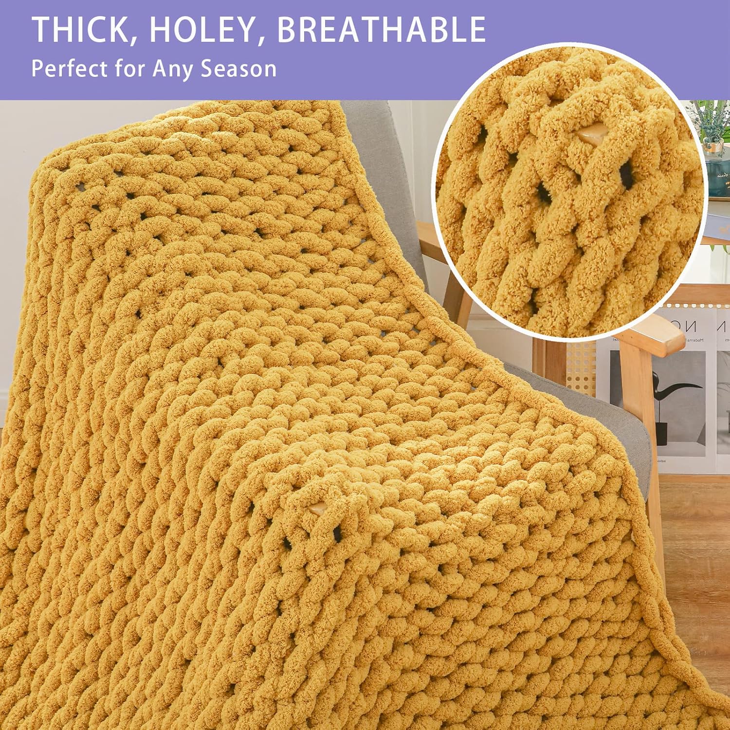 - Holey Chunky Knit Blanket: Our chunky throw blanket is 100% hand knit with cute holes, the special holey feature and classtic pattern make this plush blanket a great art dĂŠcor throw blanket for couch, bed and sofa, bringing you warmth without overheating