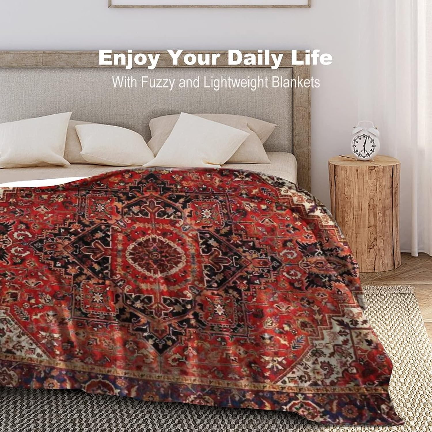 Heriz Antique Vintage Boho Persian Carpet Flannel Fleece Throw Blankets 50"X40" Lightweight Fluffy Winter Fall Blanket Cozy Soft Fuzzy Plush Home Decor for Couch Bed Sofa Bedroom Living Room Travel