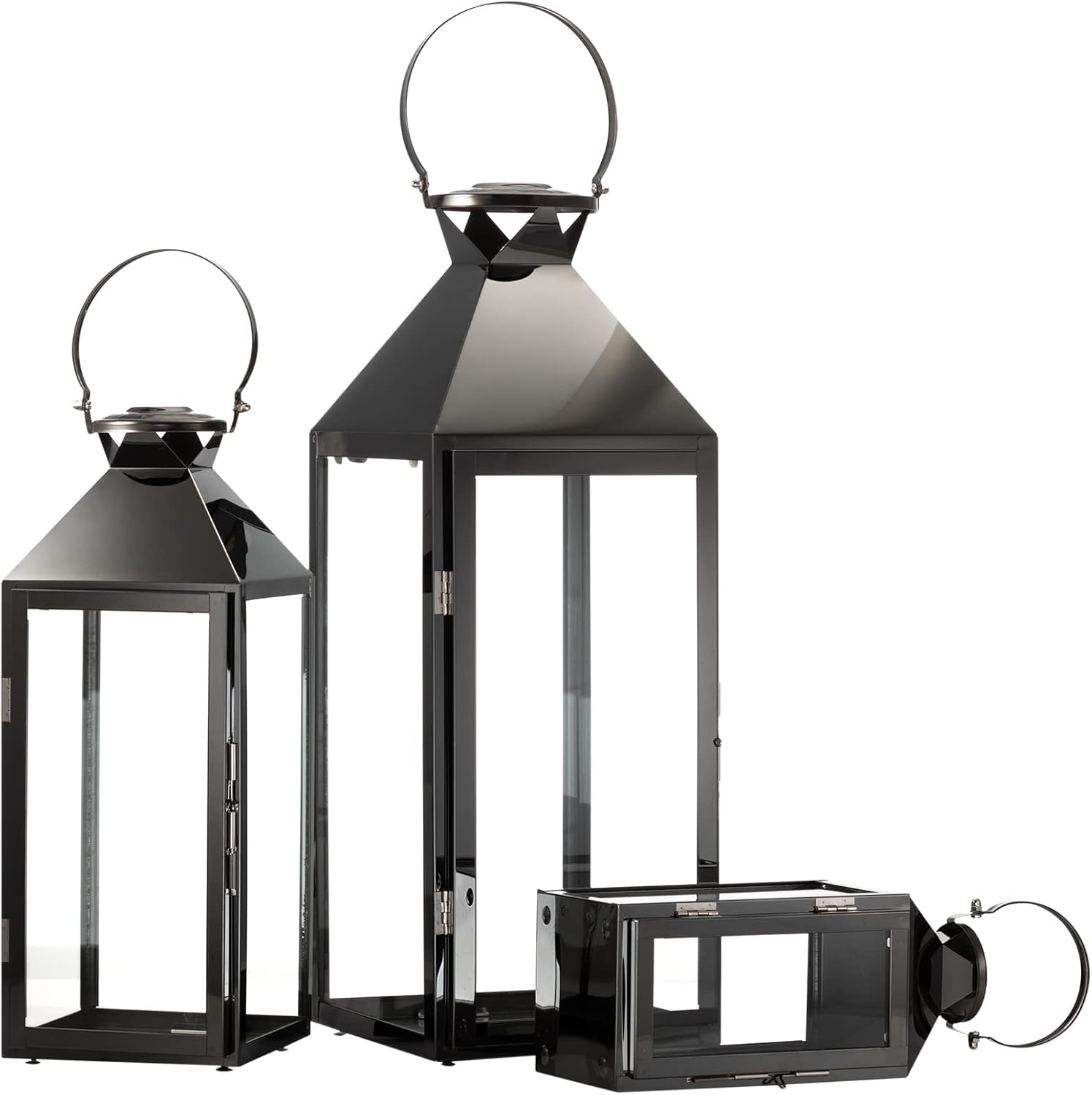 MATICO Stainless Decorative Pinnacle Candle Lantern Set of 3, Hanging Decor Hurricane Lantern Candle Holder for Festival Ceremony Home Decor, Both Indoor & Outdoor Use, Black