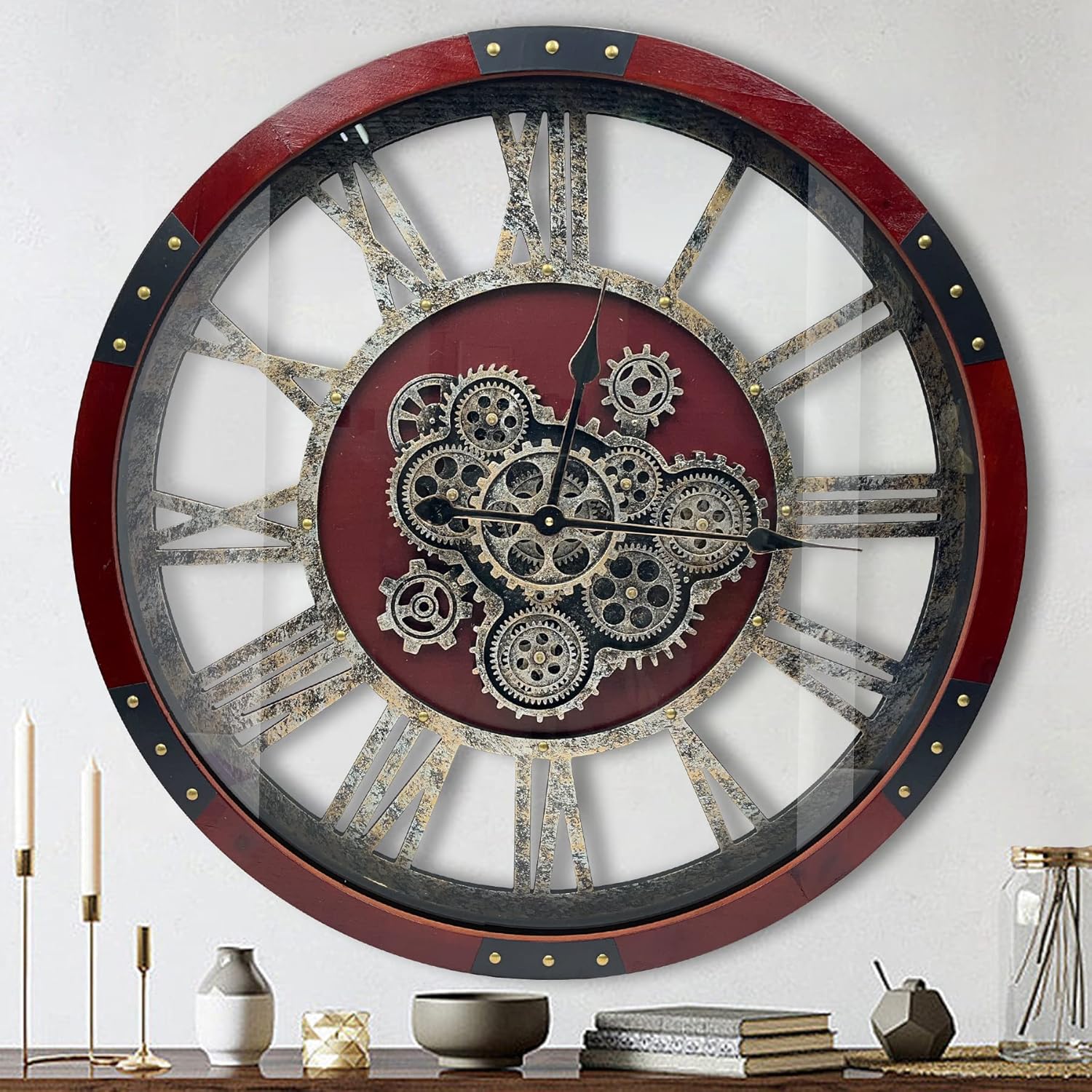 - đ§ăReal Moving Gears Wall ClockăThe rustic wall clock is design with multi-real moving gears, put battery in, various gears start working, makes a subtle relaxing sound and makes a living element in the environment in where it is placed, vintage and magical, catch all eyes of visits.