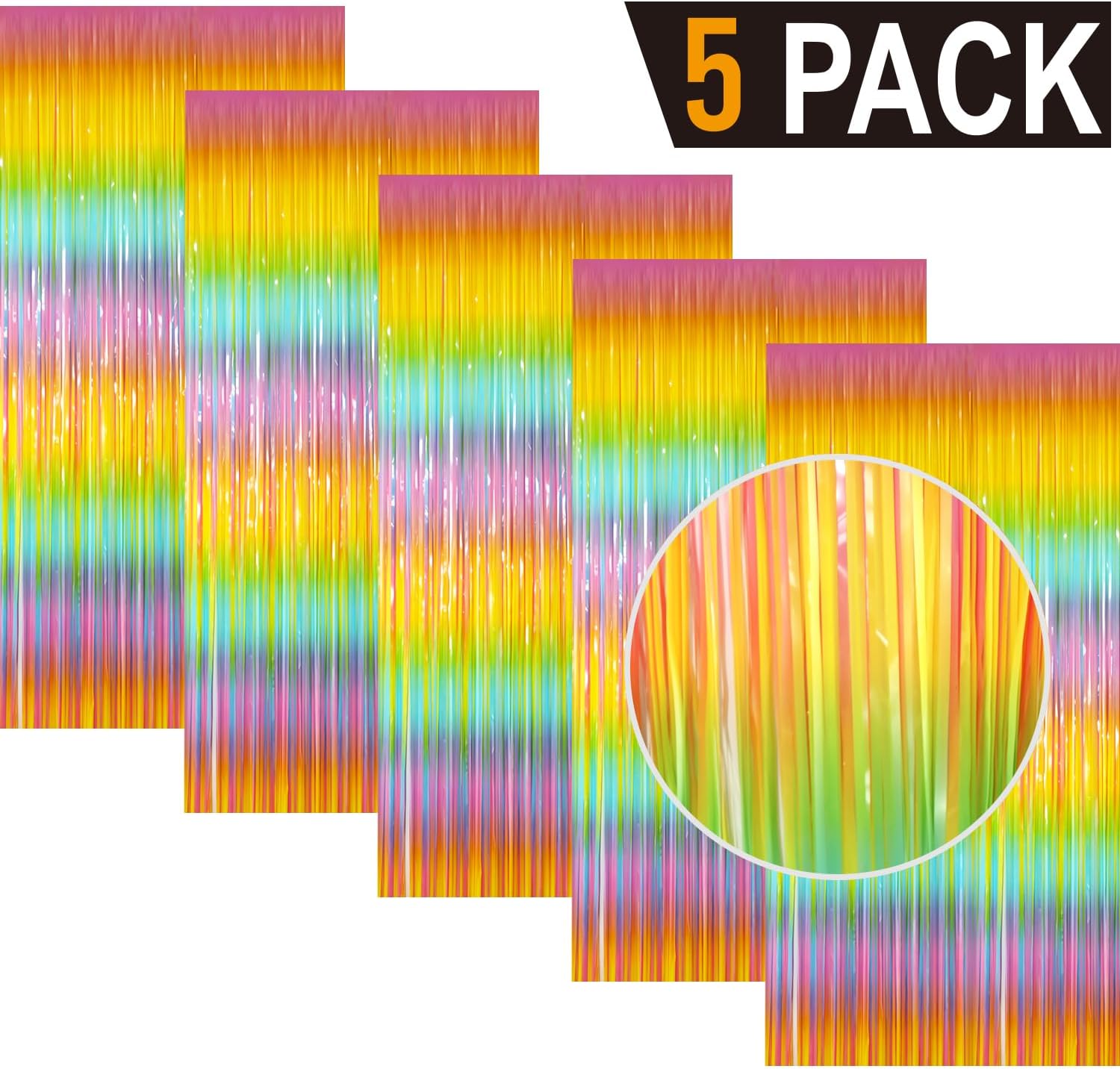 - Package Includes:5 pack foil fringe curtain,3.2 ft x9.8 ft each,suitable for hanging on a door or coverage a wall fully