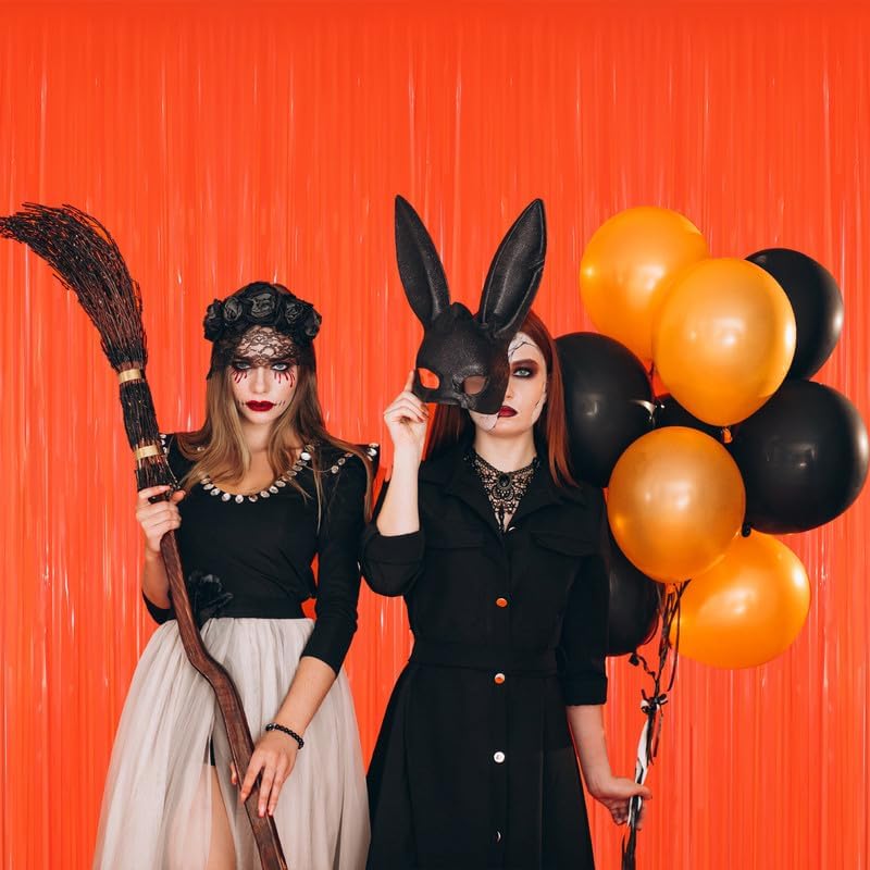 GOER 3.2 ft x 8.2 ft Metallic Tinsel Foil Fringe Curtains Party Photo Backdrop Party Streamers for Birthday,Graduation,New Year Eve Decorations Wedding Decor(5 Packs,Candy Tangerine)