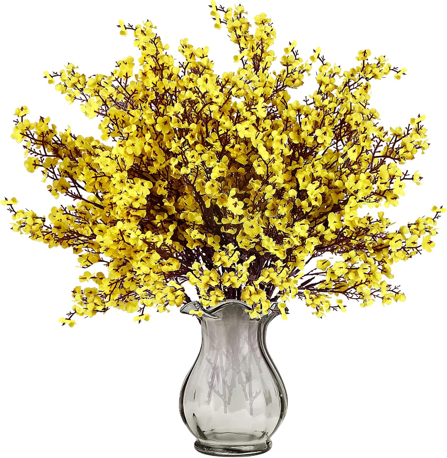 - PACKAGE & SIZE: The package has 15 yellow babys breath (no vase included) packed in a box, adequate enough to match many holiday ornaments and satisfy your diverse. The real touch fake silk flowers have a total length of 19in. Each piece has 5 item parts, allows you to decorate your space easily.