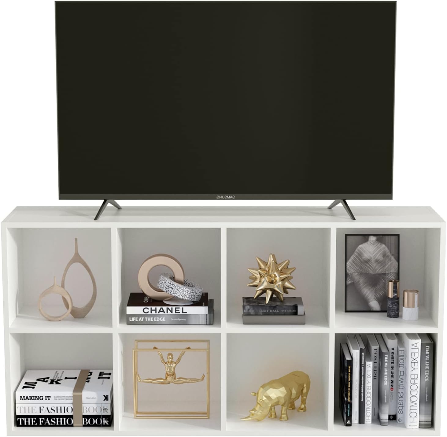 - VERSATILE & PRACTICAL - It can be an 8 cubes storage bookcase or a TV cabinet, which can hold up to 55 inches of TV. Select different usage scenarios according to your requirements. It's a very practical product.
