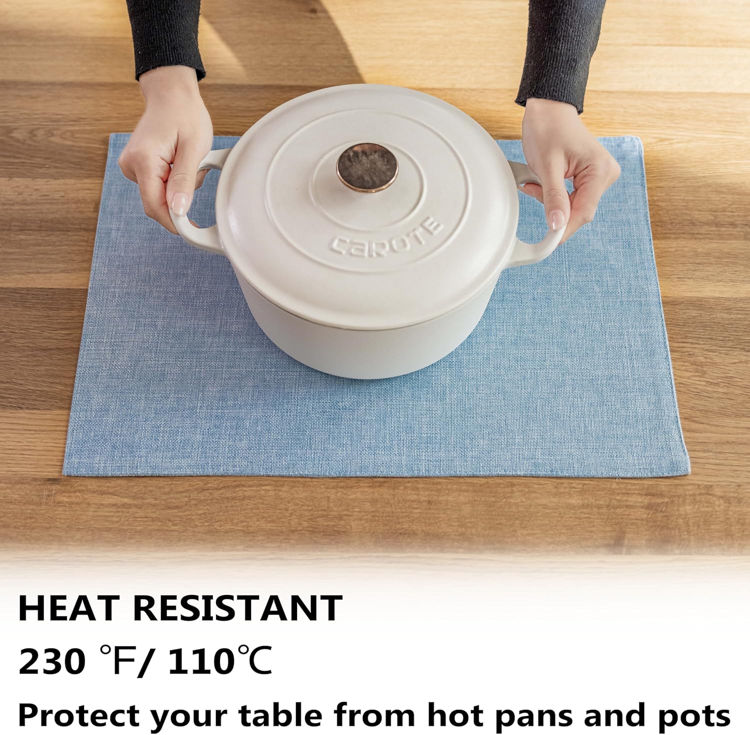 - Premium Fabrics: Our place mats are made of faux linen fabric, eco-friendly and durable placemats with exquisite workmanship which can be used for a long time. Not waterproof and liquid can go through placemats