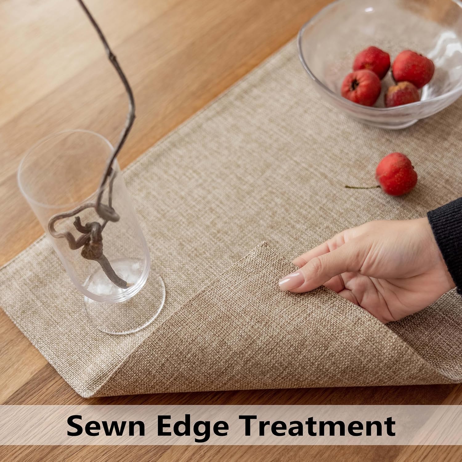 Demetex Linen Placemats Set of 6 Heat Resistant Wipeable Cloth Table Place Mats for Dining Table Indoor Restaurants, 13 x 19 inches, Linen