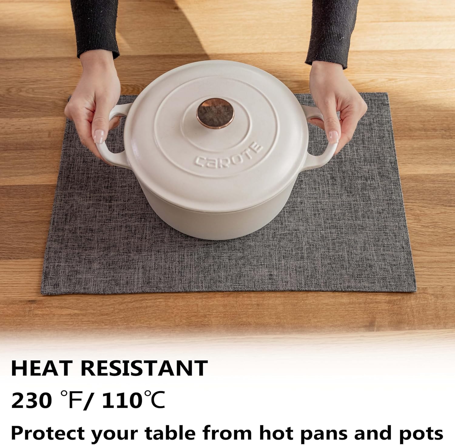 Demetex Placemats Table Mats Set of 6 Heat Resistant Washable Cloth Place Mats for Dining Table Holiday, Dark Grey