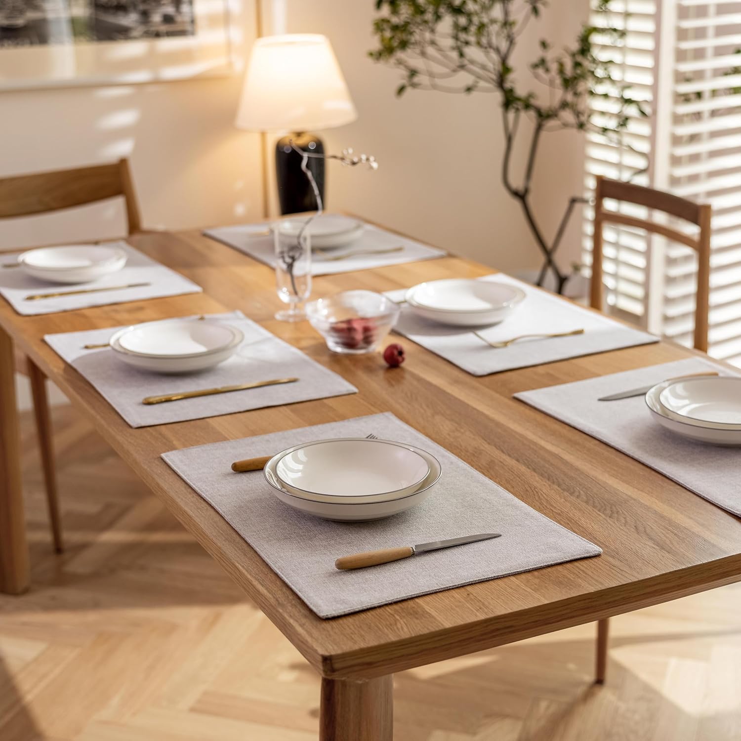 Demetex Gray Placemats Set of 6 Linen Heat Resistant Plate Mats Washable Place Mats for Buffet Dinner Party Decorations, 13 x 19 inches, Light Grey