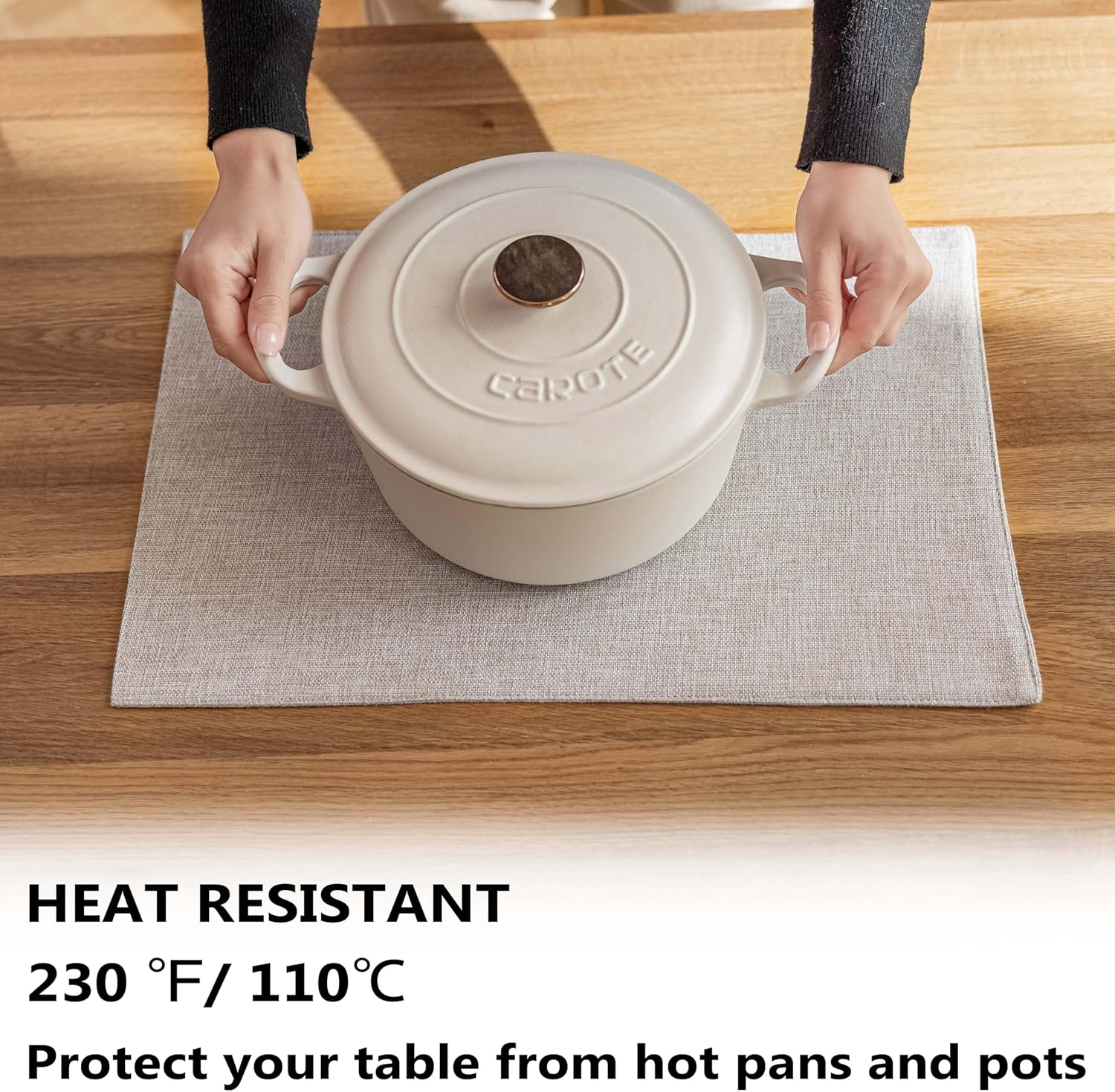 - Premium Fabrics: Our place mats are made of faux linen fabric, eco-friendly and durable placemats with exquisite workmanship which can be used for a long time. Not waterproof and liquid can go through placemats