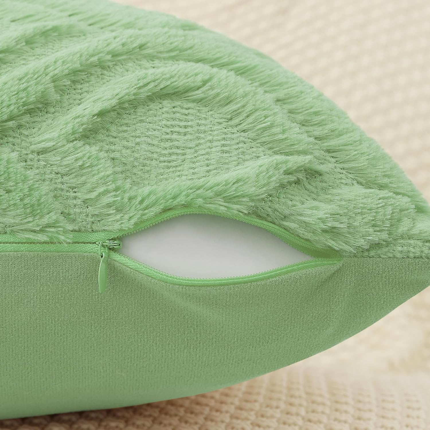 decorUhome Throw Pillow Covers 24x24 Inch Set of 2, Soft Plush Decorative Faux Fur Sage Green Solid Couch Pillow Covers, Accent Farmhouse Neutral Square Euro Pillow Cases for Sofa Bed Living Room