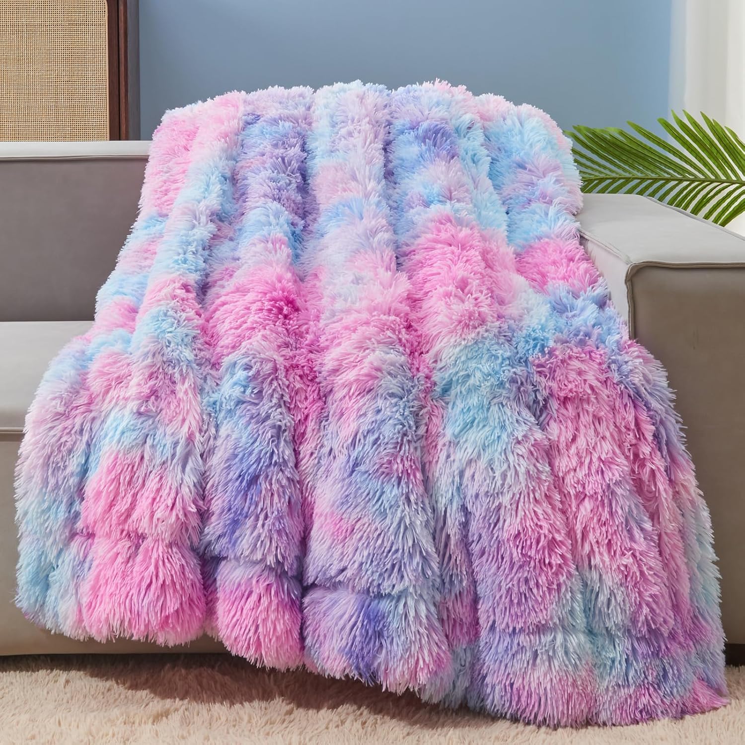 GONAAP Fuzzy Faux Fur Throw Blanket Purple Rainbow Super Soft Cozy Plush Fuzzy Shaggy Blanket for Couch Sofa Bed (Purple Rainbow, Throw(50"x60"))