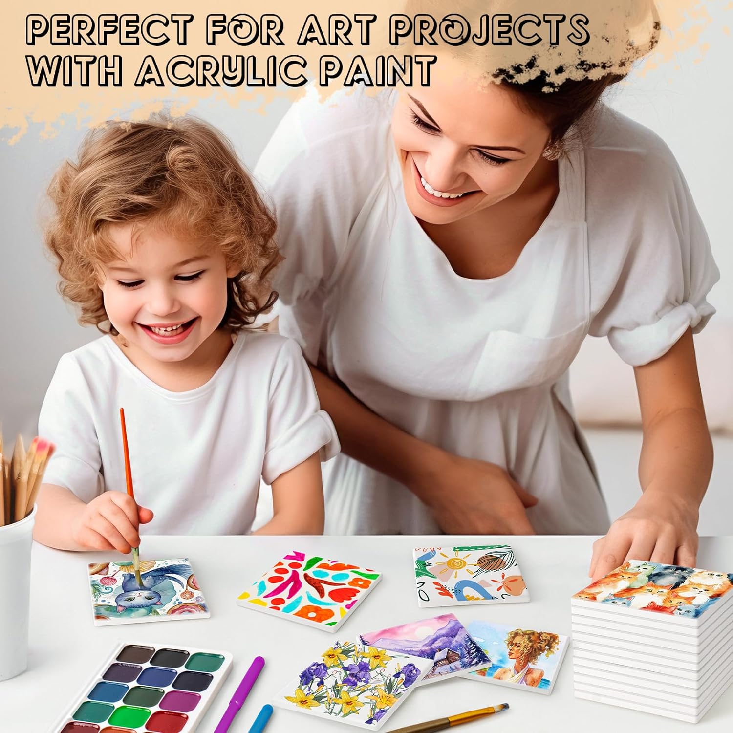 Ceramic Tiles for Crafts, GOH DODD 36 Pack Unglazed Blank Coasters with Cork Backing for Alcohol Ink Painting Acrylic Pouring Art Projects Housewarming Gifts Wedding School Education, 4 Inch