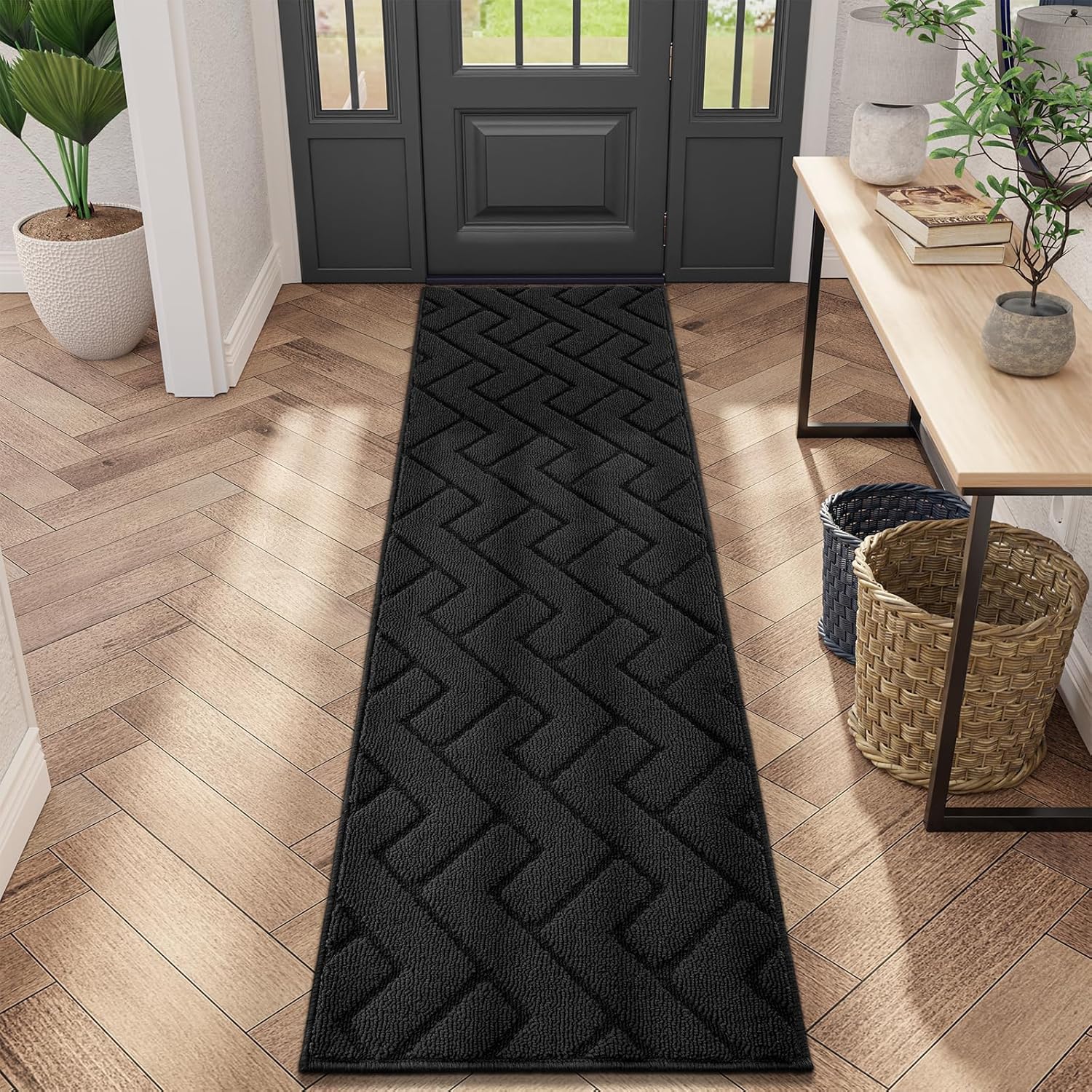 hicorfe Indoor Doormat,Front Back Door Mat Rubber Backing Non Slip Door Mats 20"x59" Absorbent Resist Dirt Entrance Doormat Inside Floor Mats Entryway Washable Low-Profile for Patio,Garden(Charcoal)