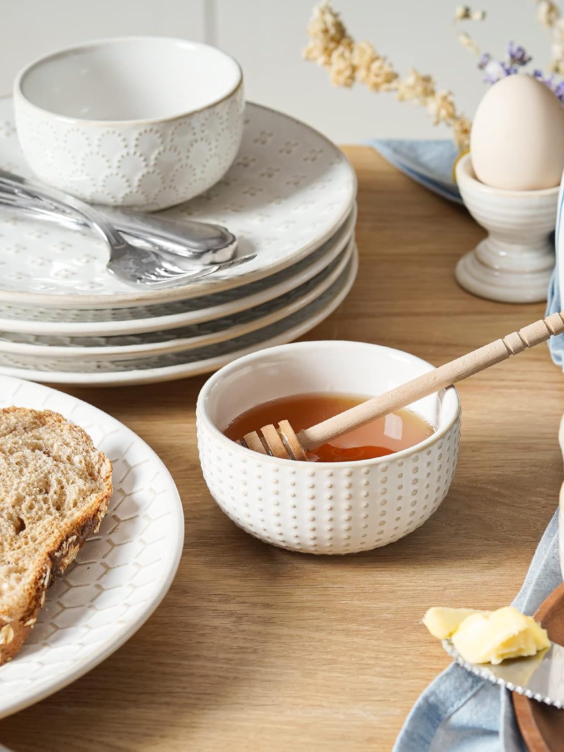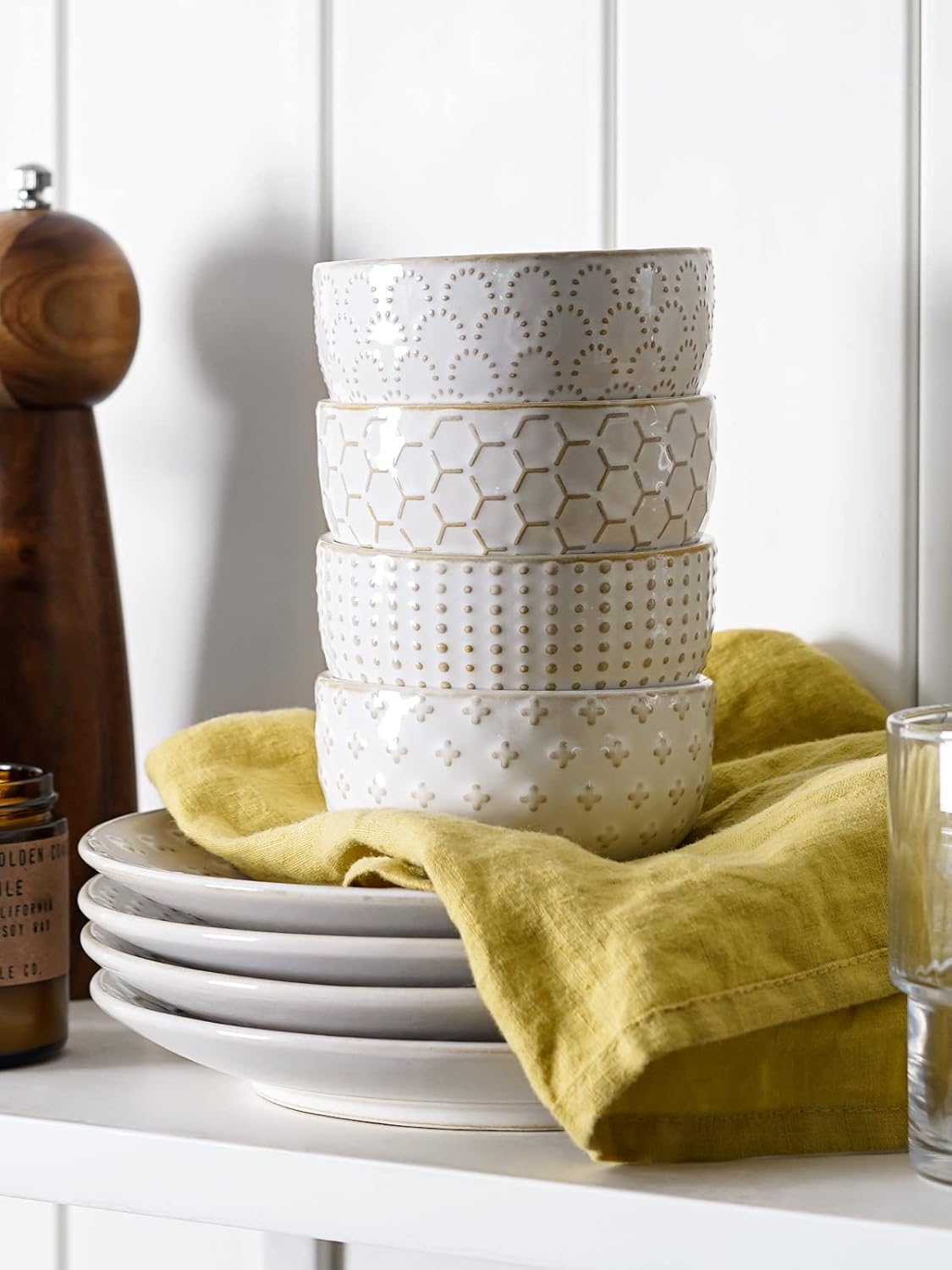 - Charming Farmhouse Style for Table Setting: Each bowl features a unique embossed pattern on the outside, adding rustic elegance and texture to your table. The smooth, white interior beautifully contrasts with your food, making colors pop. They instantly elevate everyday meals and are perfect for creating a stylish charcuterie or appetizer board