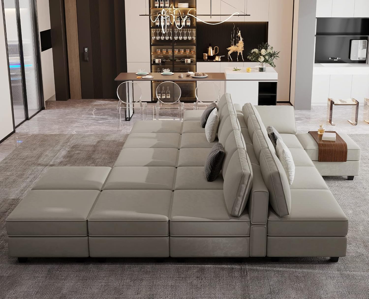 - Large Capacity Storage Space: The storage spaces of modular sofa are under each 6 seats for blankets, toy or other things that you want to store at hand. The storage uses an air pressure bar which will slow the speed of opening and closing to prevent nip injury. Storage dimensions: 22.40''(L)*22.40''(W)"*5.70"(H).
