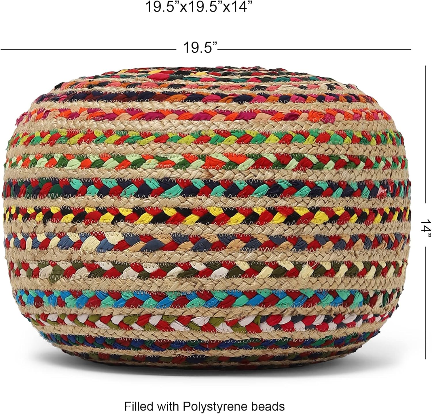 - HANDMADE FROM THE FINEST MATERIALS: The outer material on this eye-catching pouf ottoman floor chair is made from 100% jute and filled with thermocol inserts. Each floor pouf measures 19.5"D x 19.5"W x 14"H inches and is handmade by our talented in-house team.