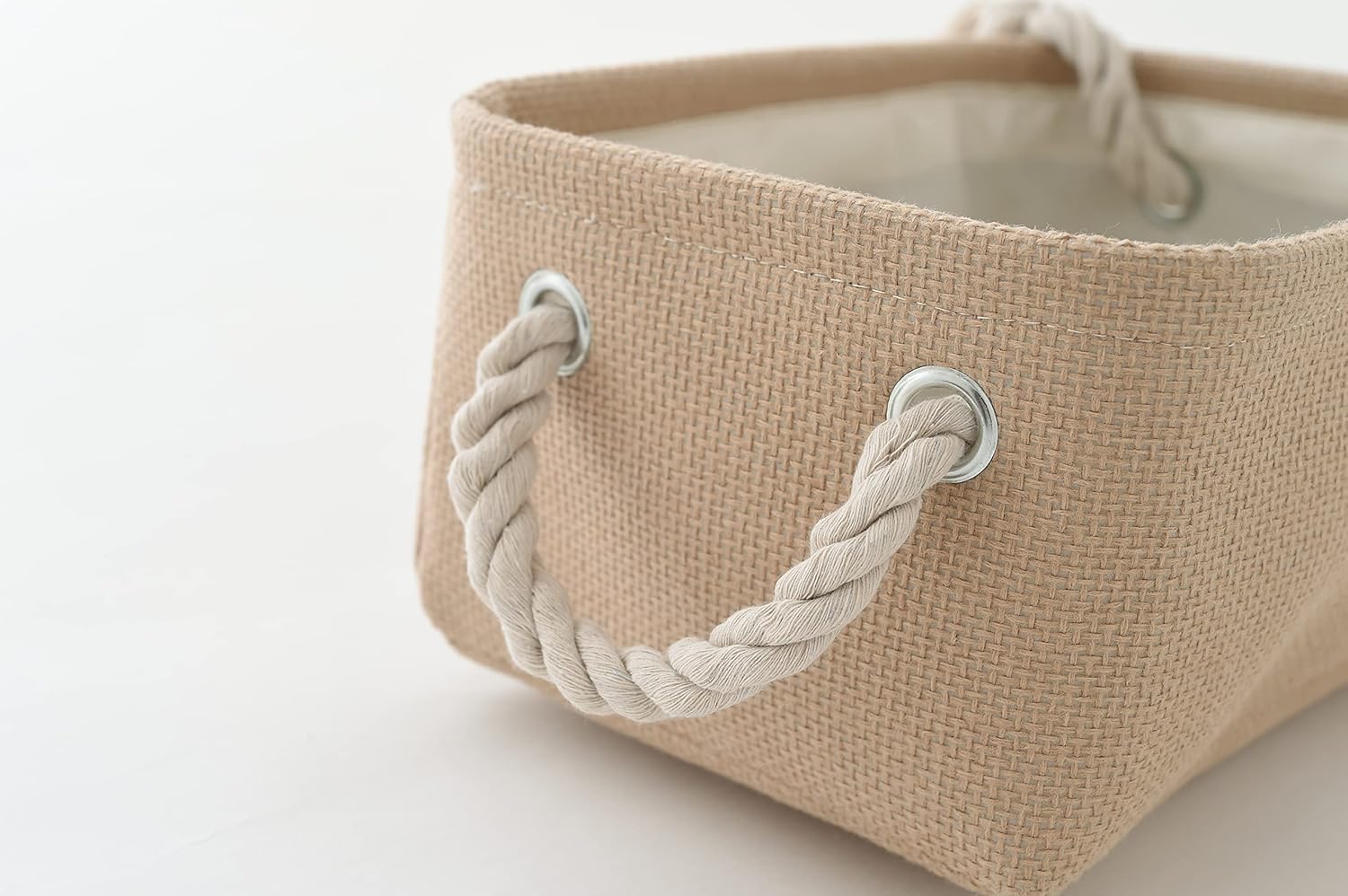 - With modern and stylish design, our storage baskets combine both of the decorative and practical forms. All of our baskets are made of fabric like cotton, linen. They are stylish, sturdy and reusable. These small storage bins can be a beautiful and functional accent to any room. They are not only household life good helpers but also charming decorations