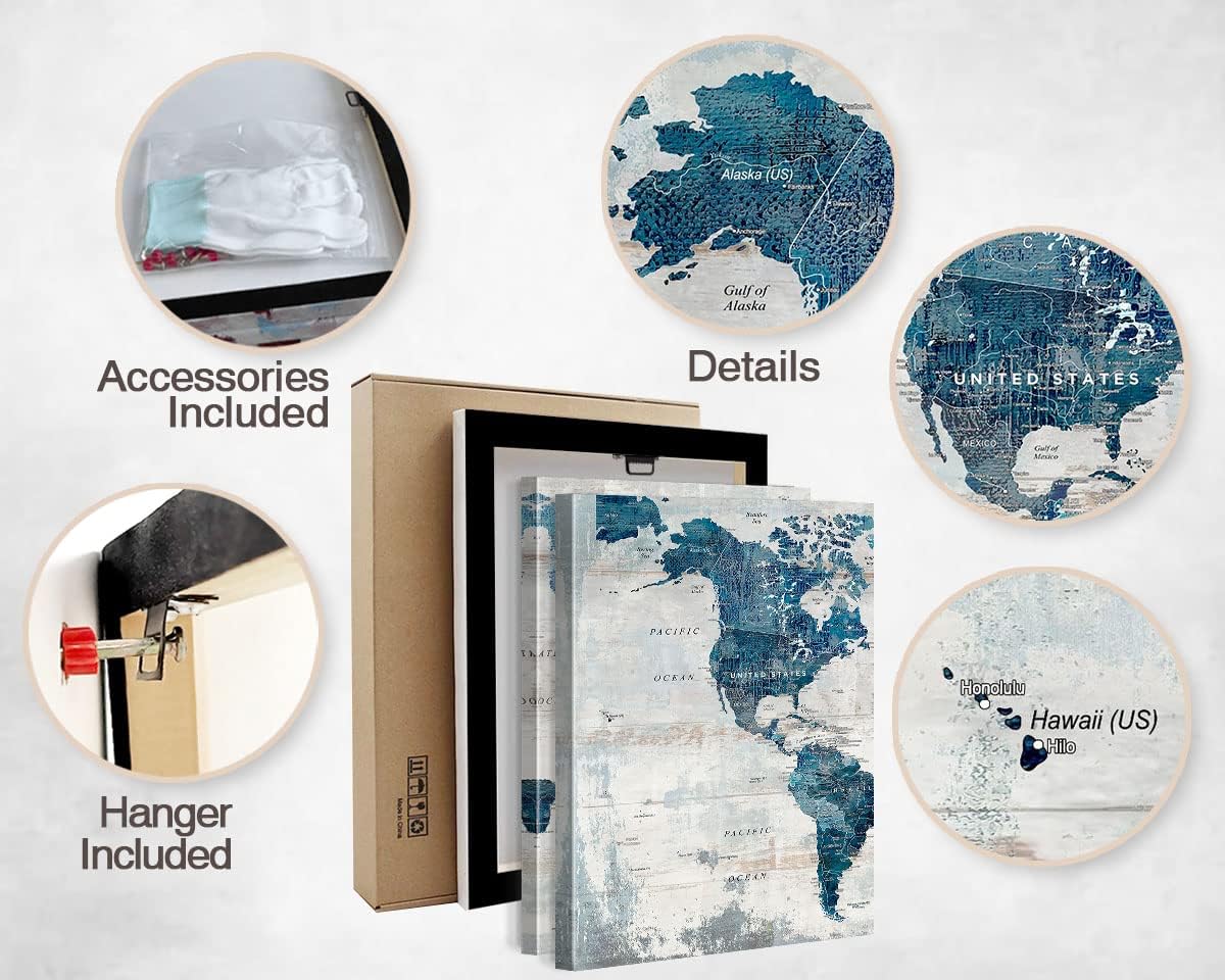 - DECORATIVE MAP - Professionally printed works of art on quality canvas. Each panel is 20" by 28", set of 3, the overall size is 60" x 28"