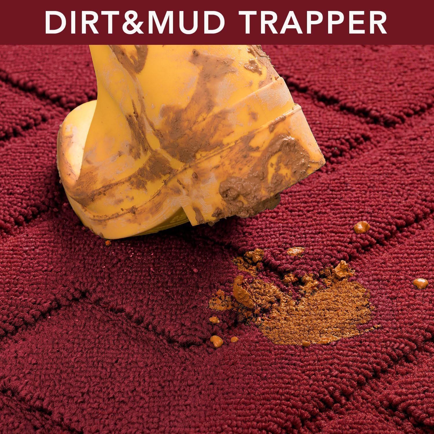 hicorfe Front Door Mat Outside Entrance,24"x35" Absorbent Muddy Dirt Resist Welcome Door Mats Outdoor Indoor,Stain and Fade Resistant,Non Slip Backing Entry Mat Doormat for Entryway (Red)