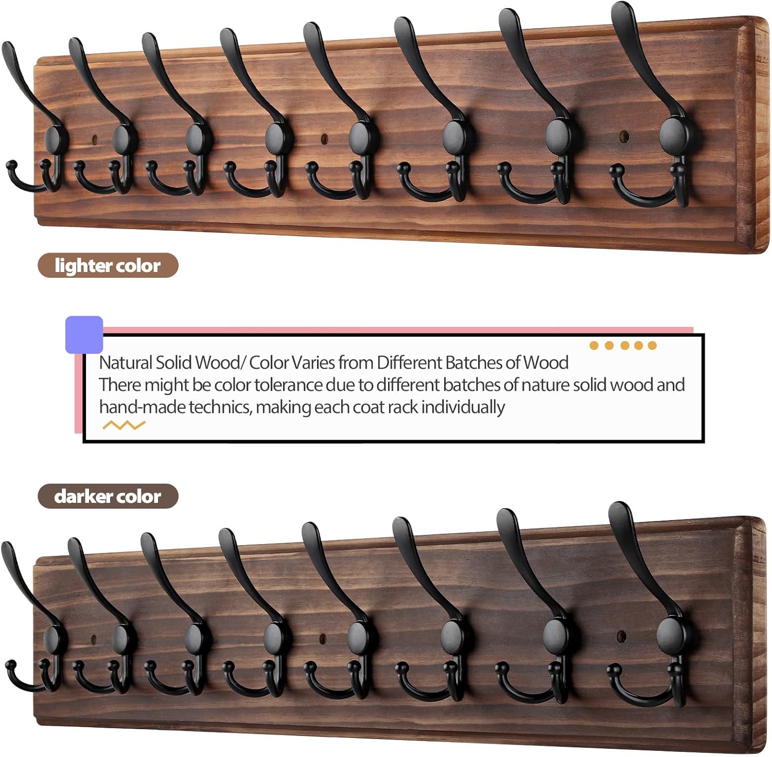 - [Sturdy wall mounted coat rack] The wood of wall mounted coat hook is made of pine wood. The clothes hook is fixed on the board and made of anti-rust zinc alloy. The hook tip is smooth and does not hurt the clothes.The collision between zinc alloy and pine creates a rural and retro atmosphere