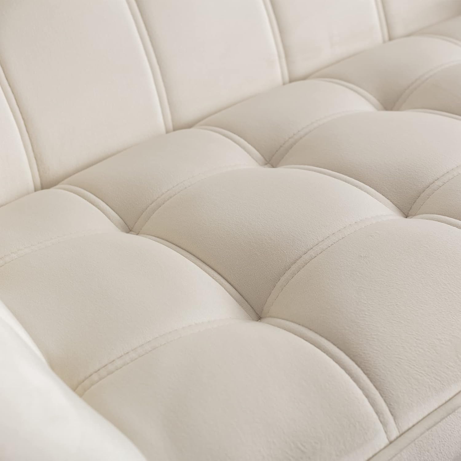 48" Small Loveseat for Small Spaces, Modern Sherpa Mini Sofa Couch 2-Seater Velvet Love Seat with Quilting Back and Gold Legs for Living Room/Bedroom, Cream