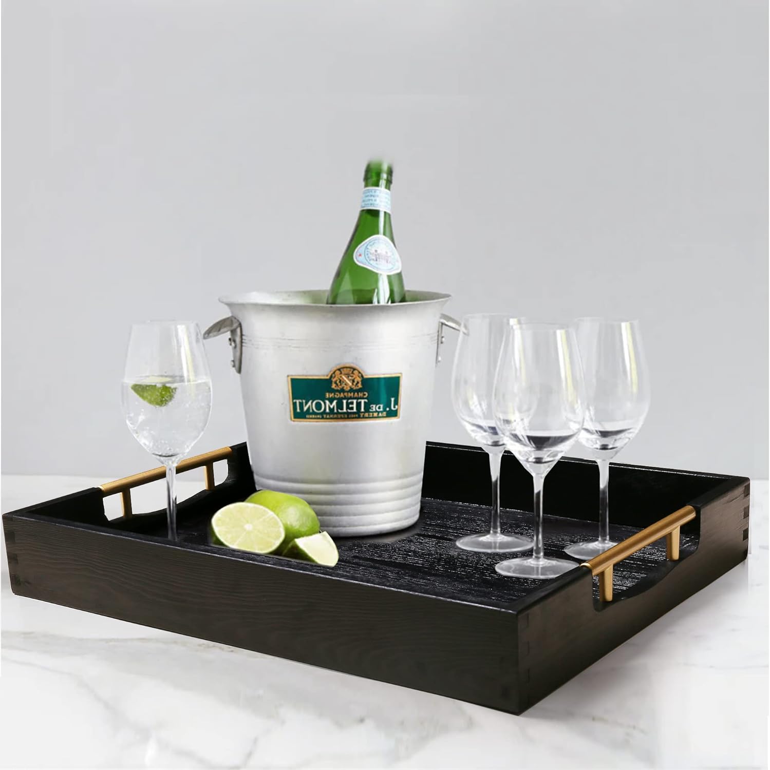 - Classy & Stylish: Our black serving tray with handles will add a pleasing aesthetic to any space: great for the bar, kitchen, dining room, living room and bathroom