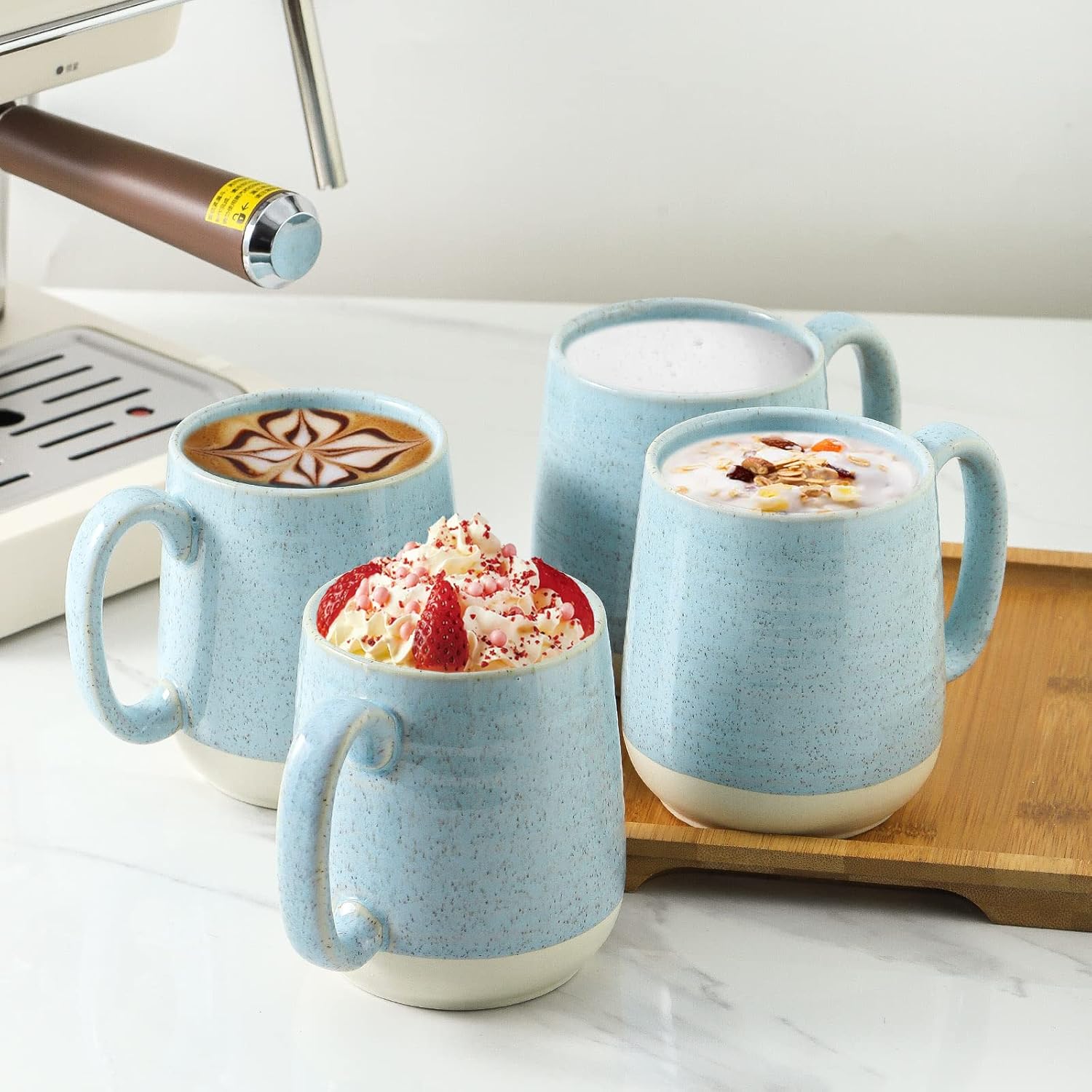 Hasense 15 Ounce Porcelain Coffee Mugs Set of 4 with Large Handle Perfect for Coffee, Tea, Milk, Chocolate and Latte, Unqiue Glaze Ceramic Coffee Cups Set for Man and Woman, Sky Blue