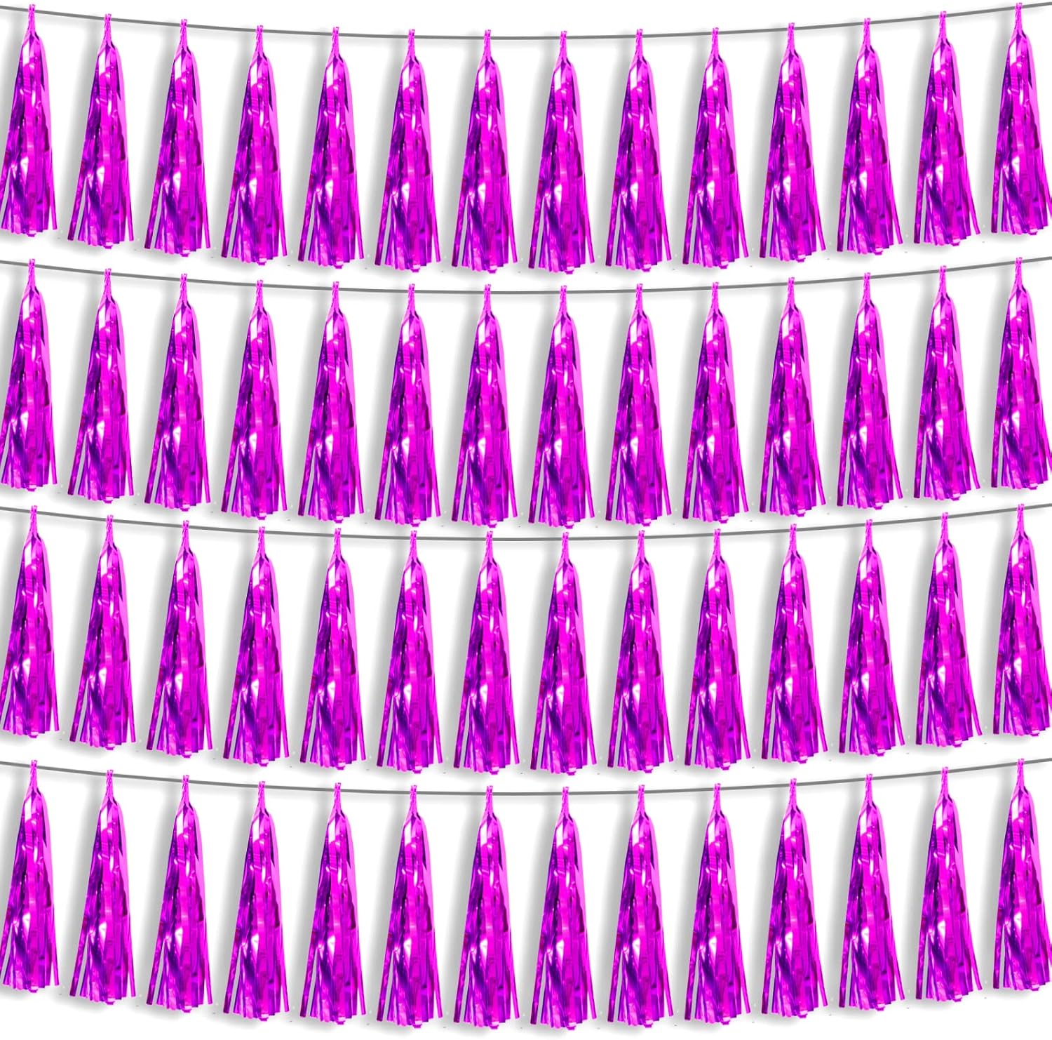 - 【Reusable Tassel Garland Material】: high-quality metallic foil tassel garlands, with the virtue of nice craftsmanship and lightweight, they are reusable and safe, and not easy to fade; They come with white ribbon for hanging, and garland tassels hang perpendicular to the string, and are adjustable to provide you with the option of spreading the tassels out or piecing them closer together.