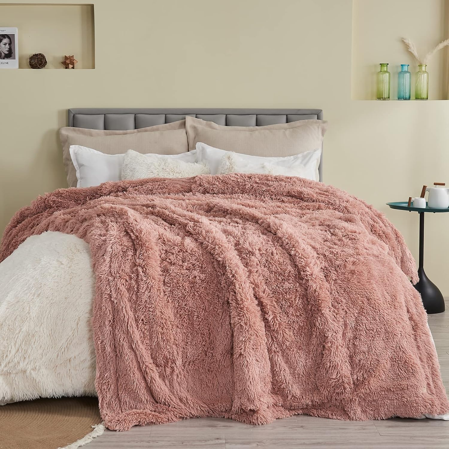 GONAAP Fuzzy Faux Fur Throw Blanket Queen Size Pink Super Soft Cozy Plush Fuzzy Shaggy Blanket for Couch Sofa Bed (Pink, Queen(90"x90"))