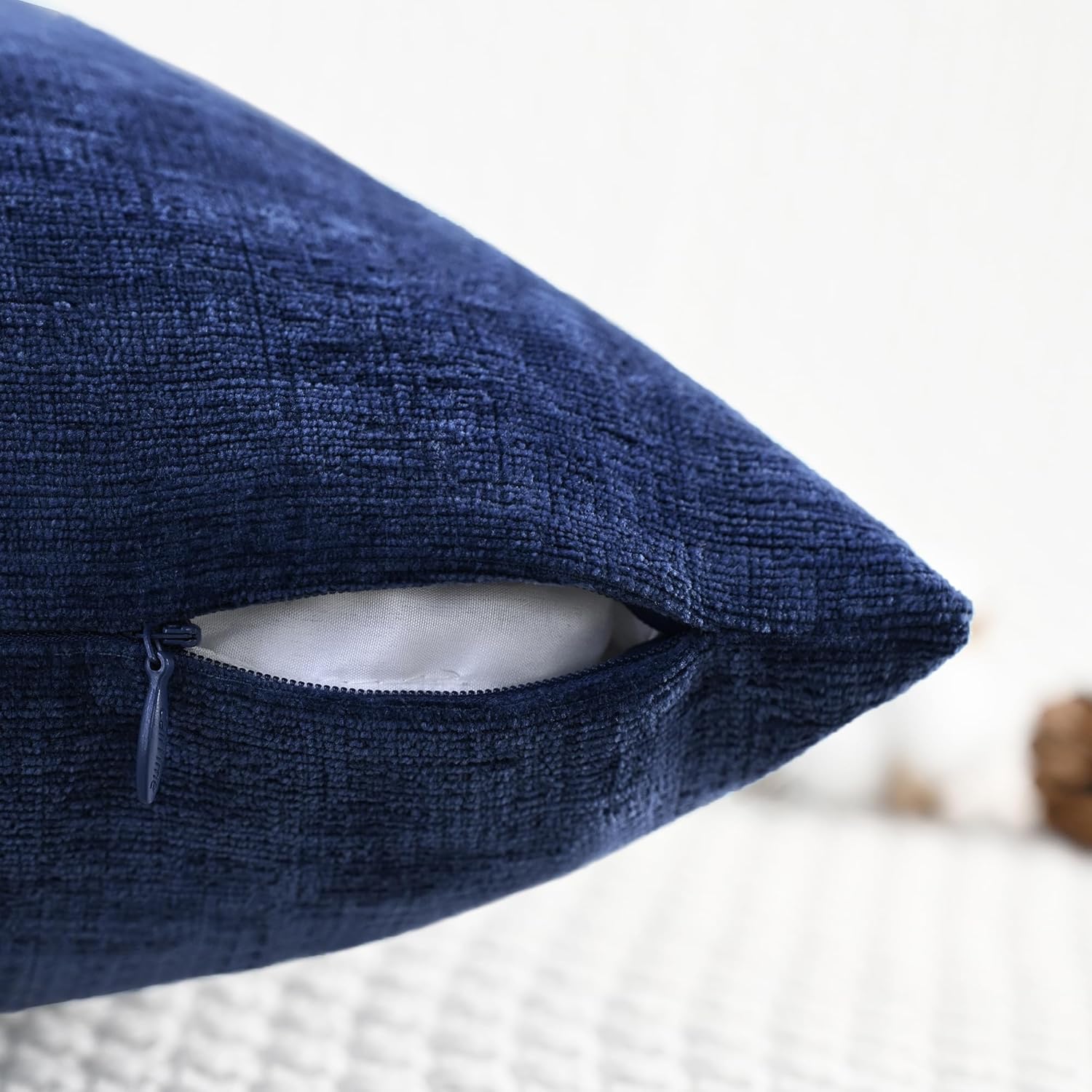 CaliTime Throw Pillow Covers Decorative 18 X 18 Inches Pack of 4 Cozy Chenille Cushion Cases for Couch Sofa Bed Living Room Home Navy Blue