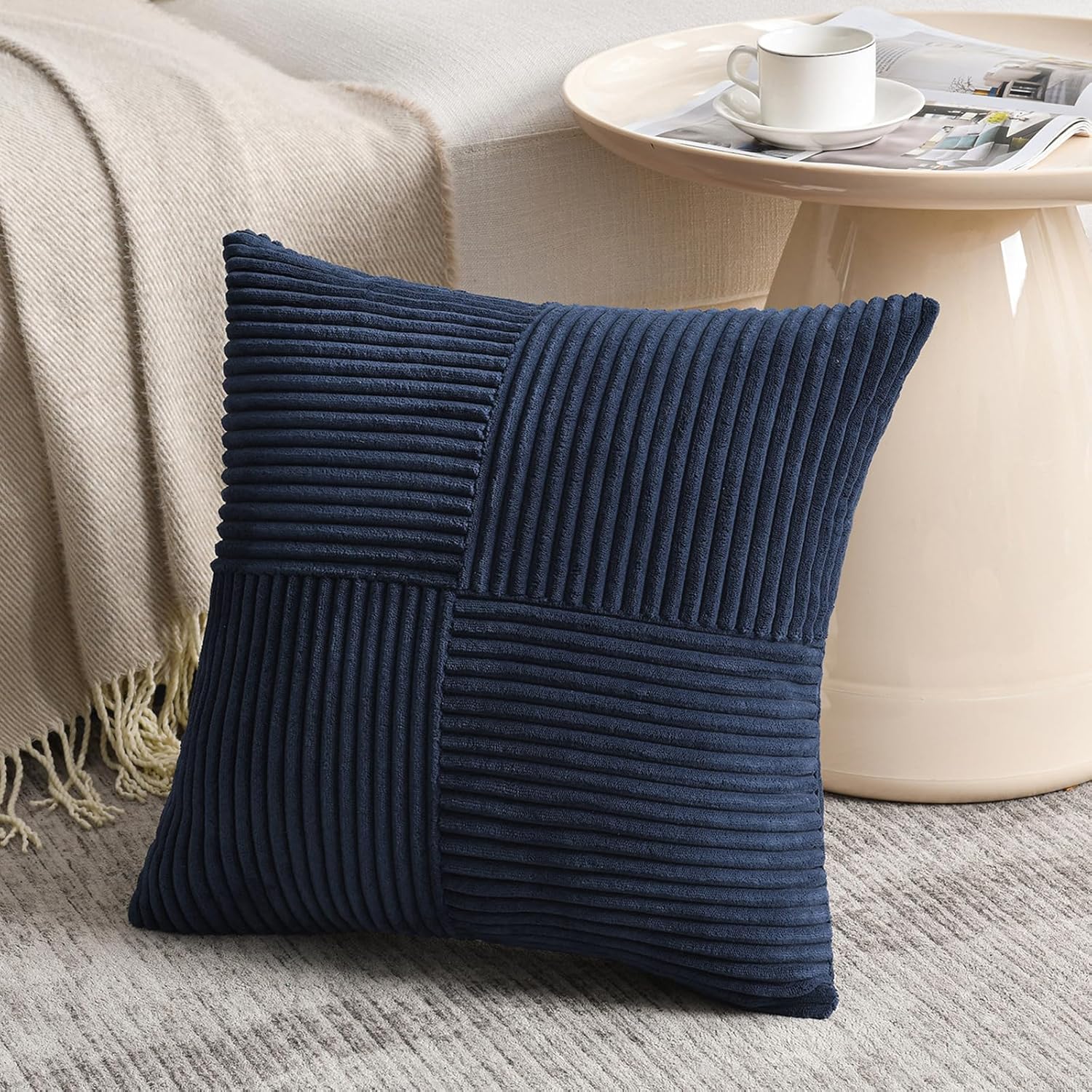 Fancy Homi 2 Packs Navy Blue Euro Decorative Throw Pillow Covers 26x26 Inch for Living Room Couch Bed, Farmhouse Boho Home Decor, Soft Corss Corduroy Patchwork Textured Square Cushion Case 66x66 cm
