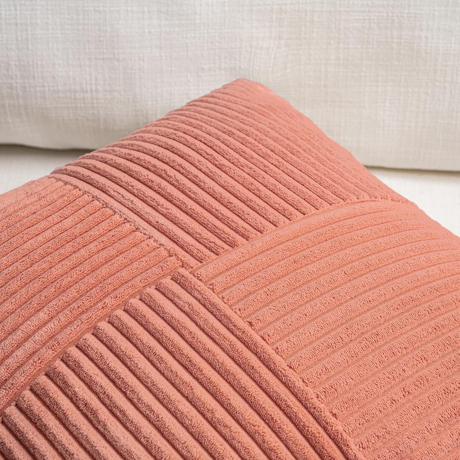 Fancy Homi 2 Packs Coral Decorative Throw Pillow Covers 20x20 Inch for Living Room Couch Bed Sofa, Rustic Farmhouse Boho Home Decor, Soft Corss Corduroy Patchwork Accent Peach Cushion Case 50x50 cm
