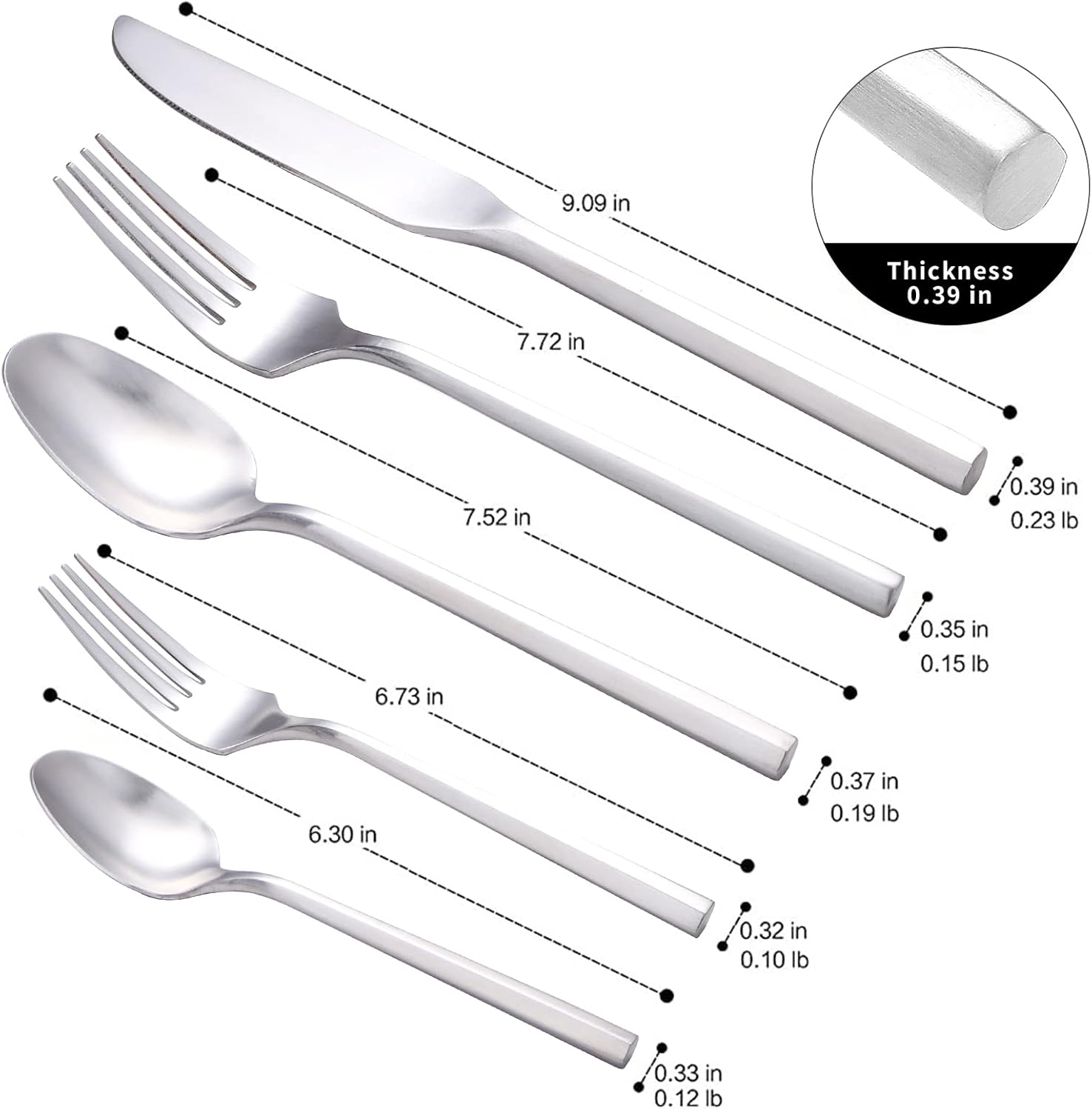 Matte Silverware Set Silver Flatware Set with Hexagon Handle 20 Pieces 18/0 Stainless Steel Cutlery Set Wedding Housewarming Gift Service for 4 (Matt silver)