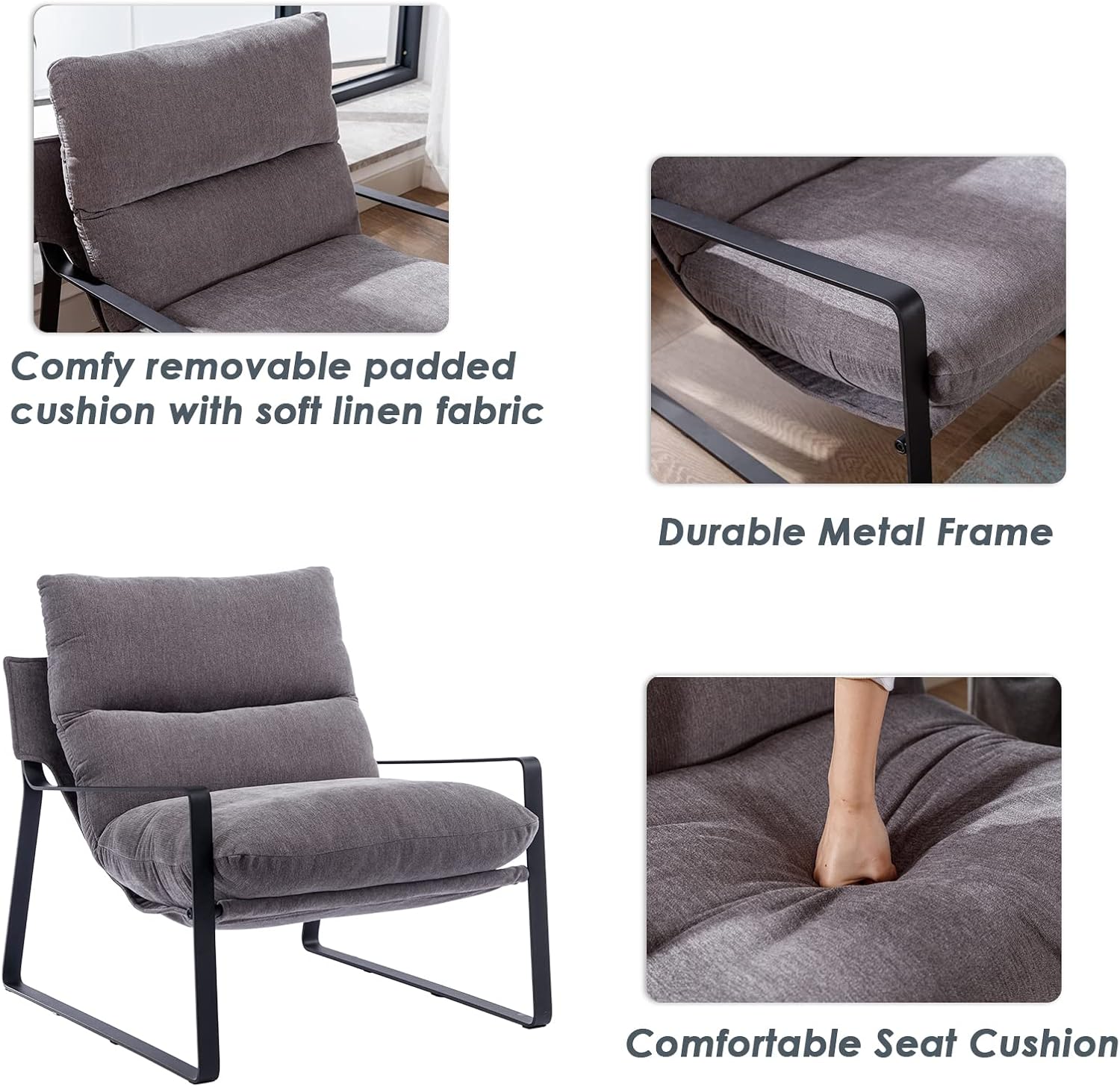 - High Quality Cushions : Covered in fine linen fabric, the densely padded foam cushions make this chair ideal for rest and relaxation. Whether you're hosting friends, reading, or watching TV, this series offers superior comfort.