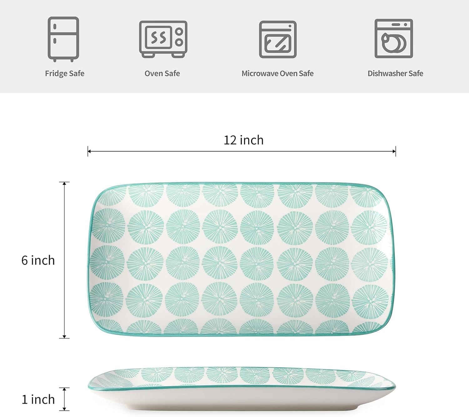 - STURDY & EASY CLEANUP - Fired at a high temperature with a good thickness to ensure their sturdiness and has no harmful Lead & Cadmium that make them healthier. The smooth surface protects its vibrant color forever and allows the large platter to be cleaned effortlessly. Safely used in the Microwave, Oven, Fridge, and Dishwasher.